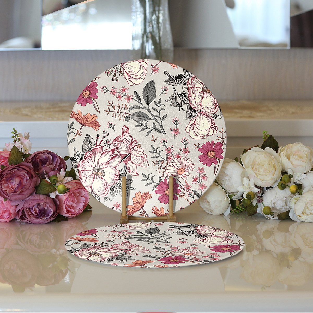 Papatya & Gül Tasarımlı Dijital Baskılı Modern Yuvarlak Servis Altlığı – Supla