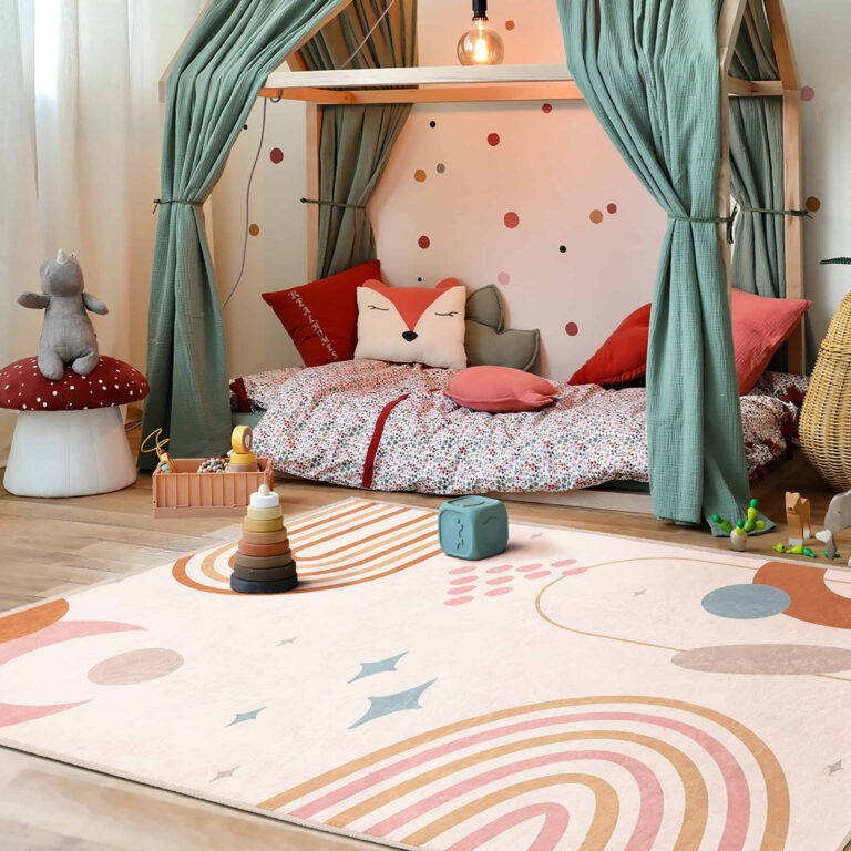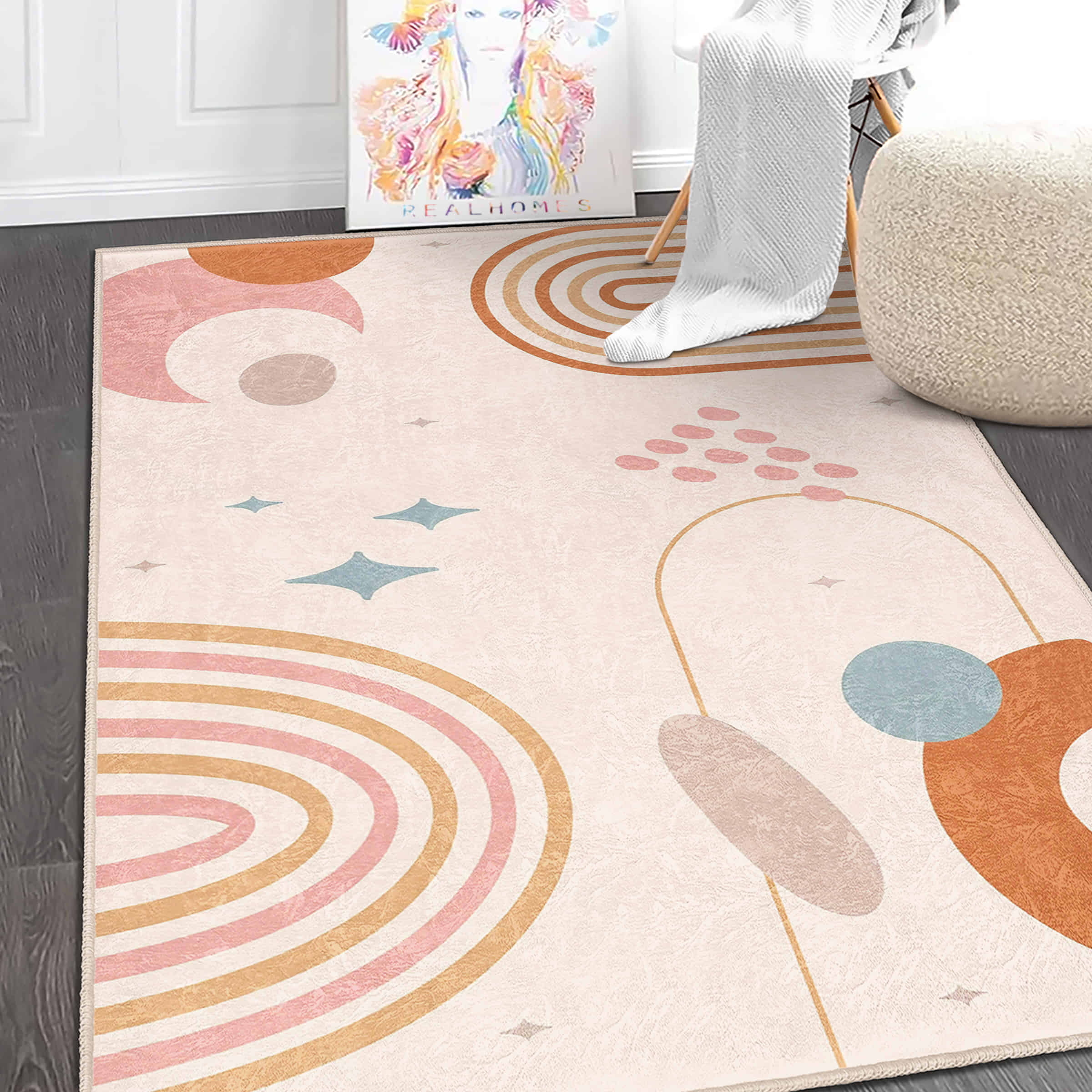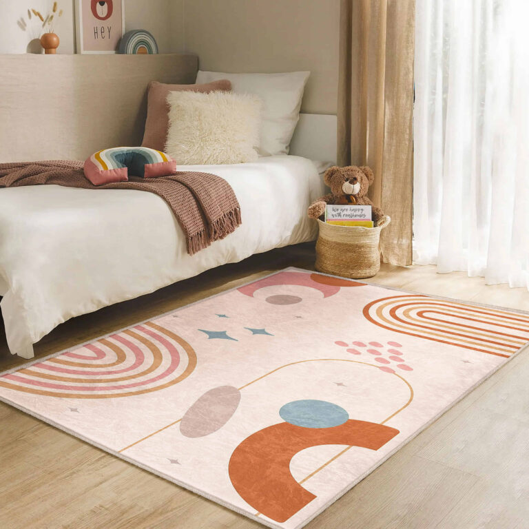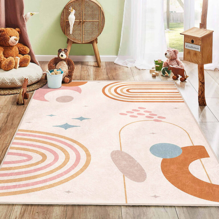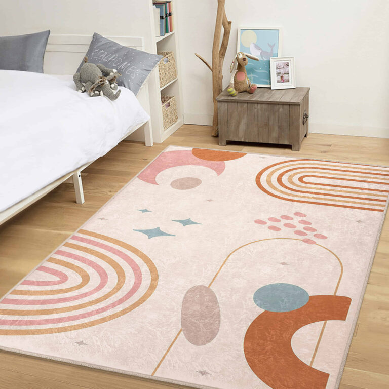 Pastel Renklerde Modern Geometrik Desenli Dikdörtgen Çocuk Halısı – Yıkanabilir Kaymaz Taban