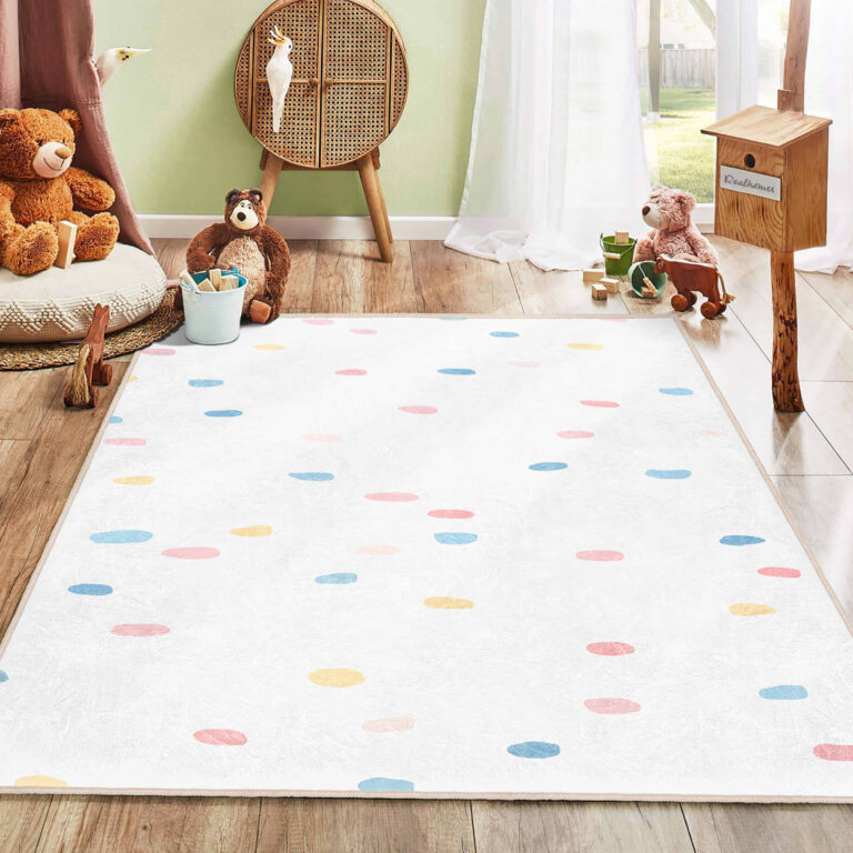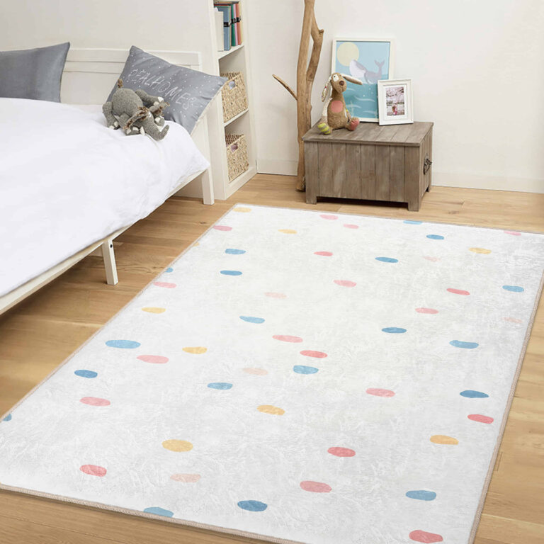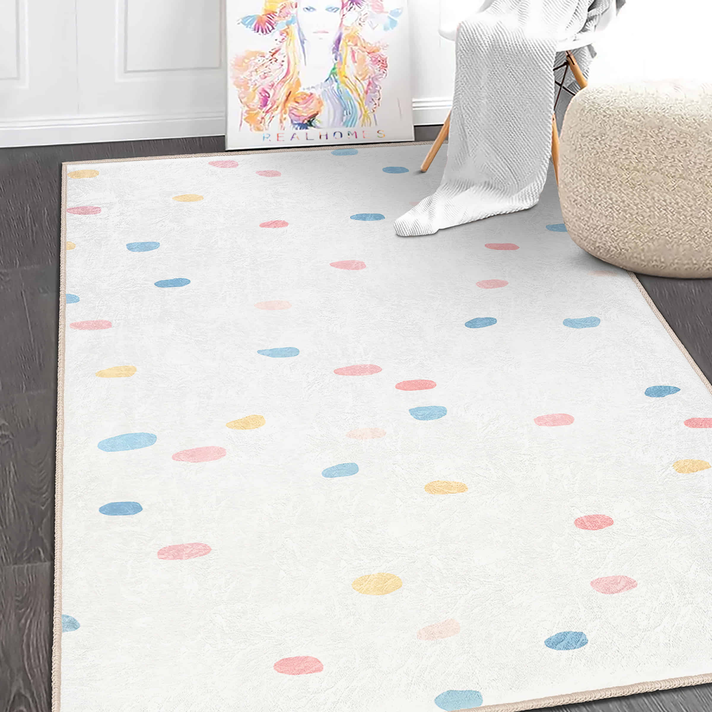 Pastel Renklerde Renkli Noktalar Desenli Dikdörtgen Çocuk Halısı – Kaymaz Taban