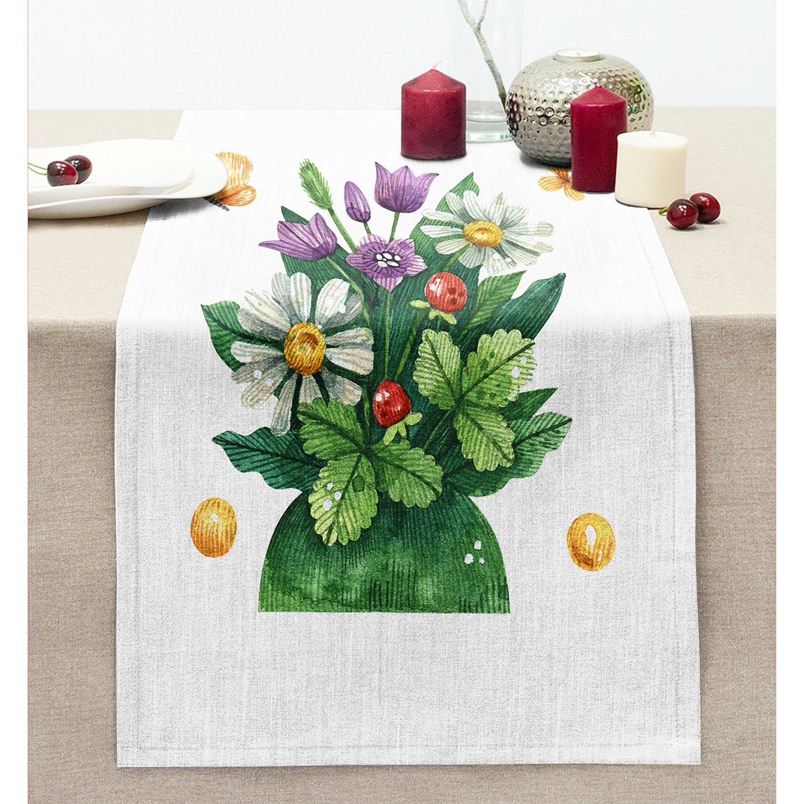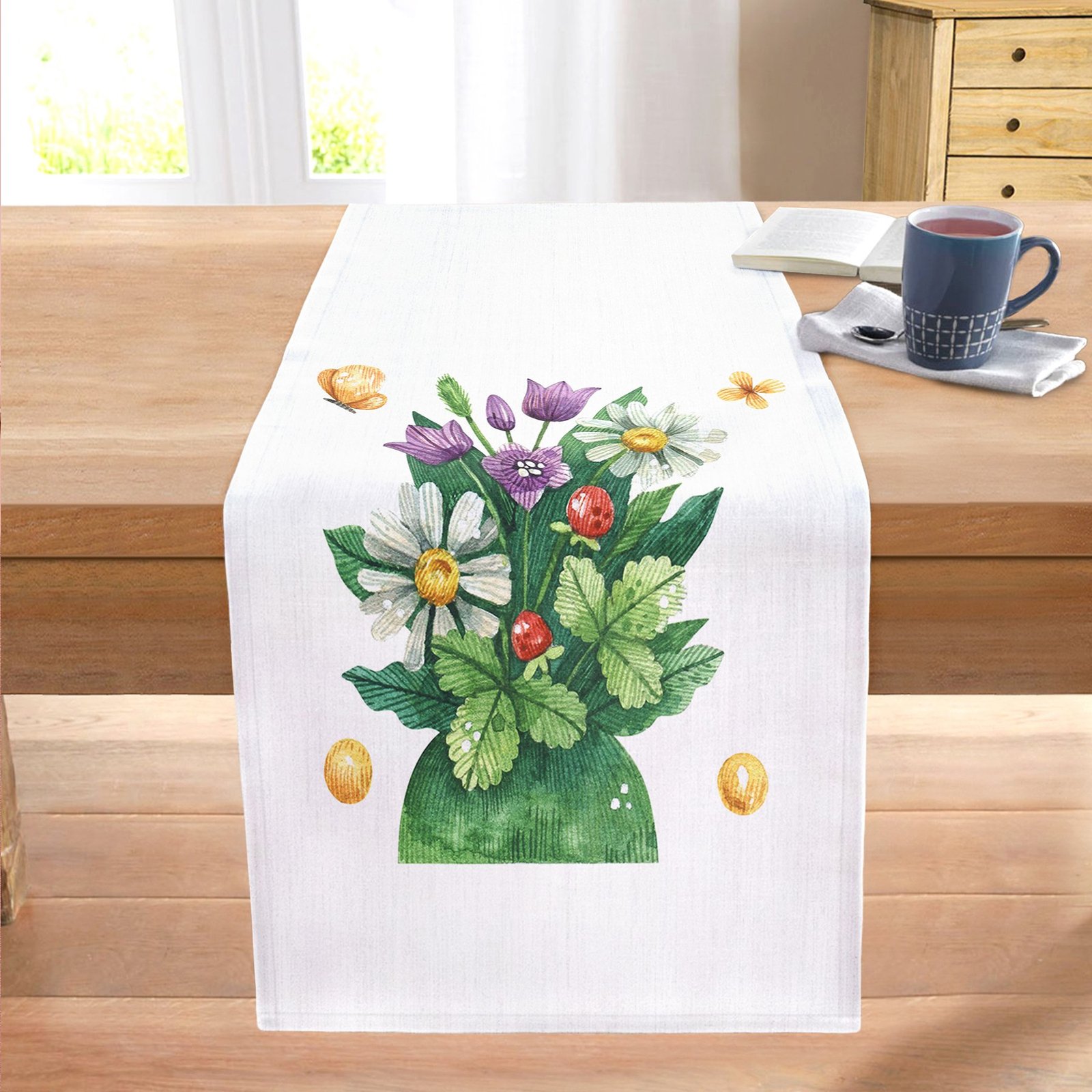 Pastel Renkli Çiçek Tasarımlı Dijital Baskılı Modern Dikişli Şönil Runner