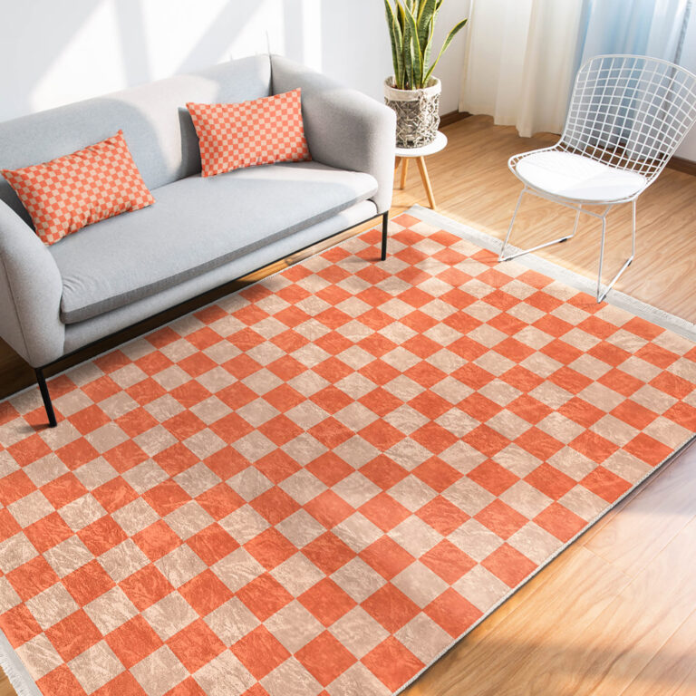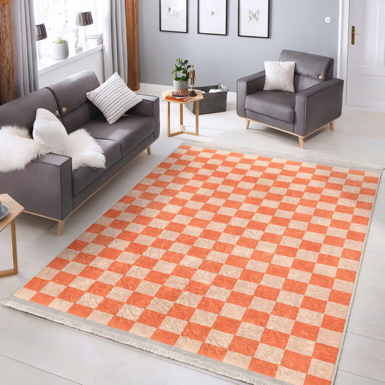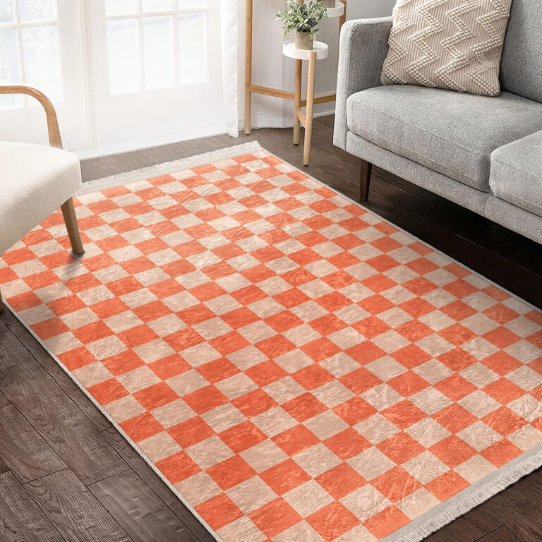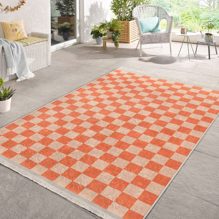 Pastel Renkli Kare Motifli Salon & Oturma Odası Dikdörtgen Kaymaz Taban Yıkanabilir Halı