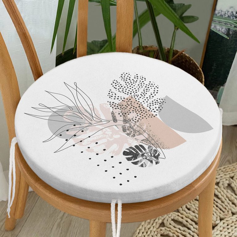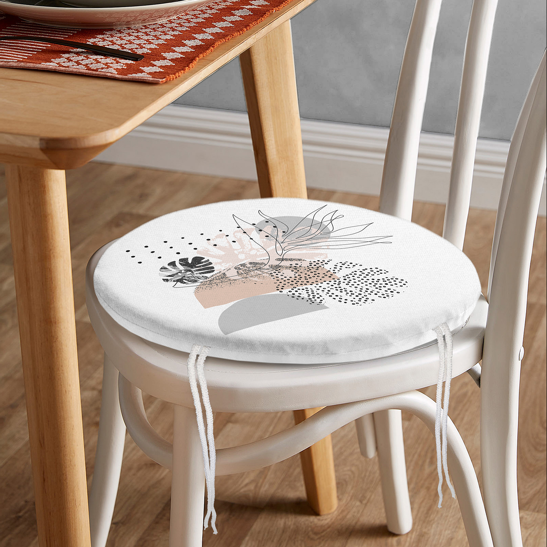 Pastel Renkli Onedraw Çizimli Geometrik Desenli Dijital Baskılı Modern Yuvarlak Fermuarlı Sandalye Minderi