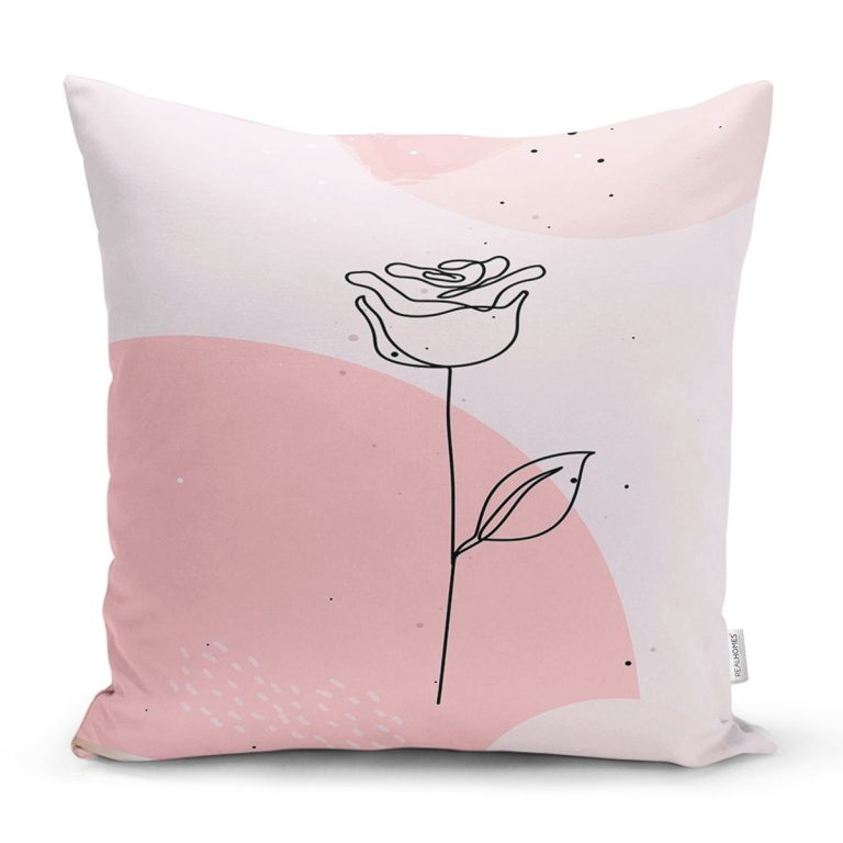 Pastel Renkli Onedraw Gül Resimli Dijital Baskılı Modern Yastık Kırlent Kılıfı