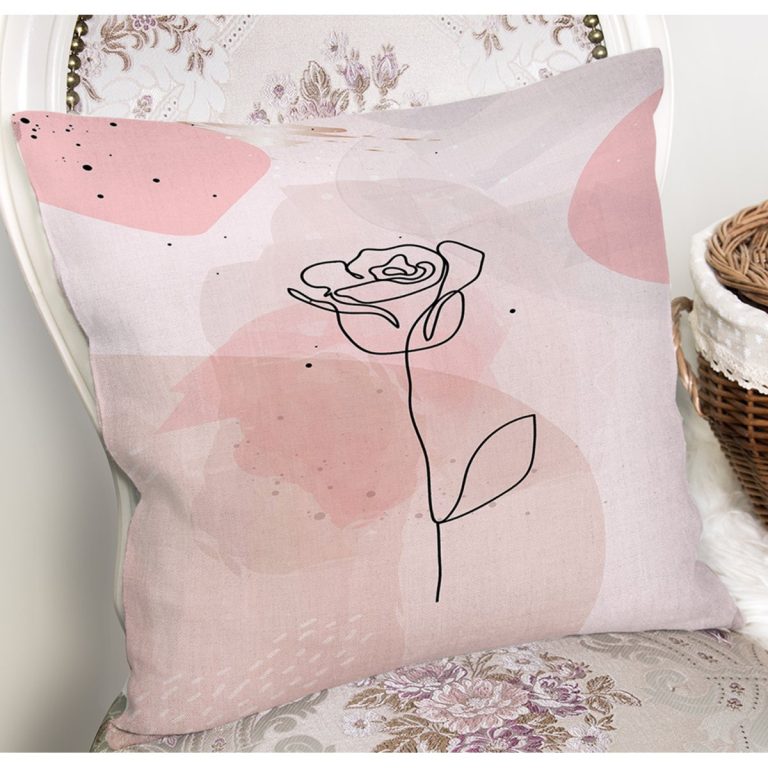 Pastel Renkli Onedraw Gül Resimli Dijital Baskılı Modern Yastık Kırlent Kılıfı