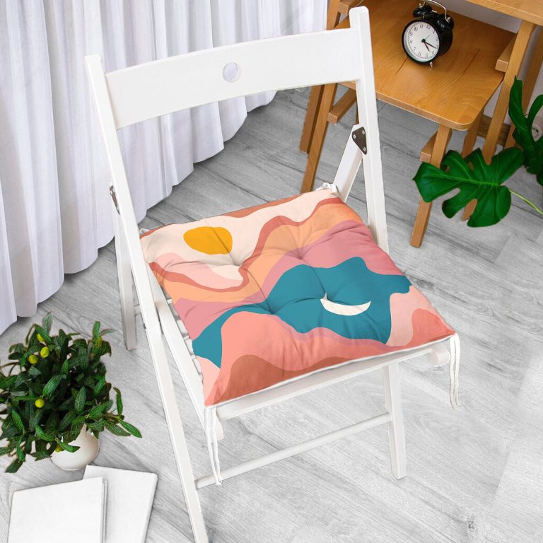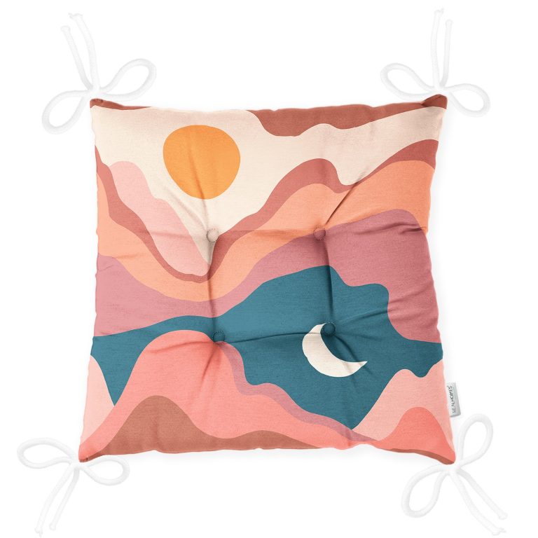 Pastel Renkli Zemin Üzerinde Ay Güneş Temalı Dijital Baskılı Modern Pofidik Sandalye Minderi