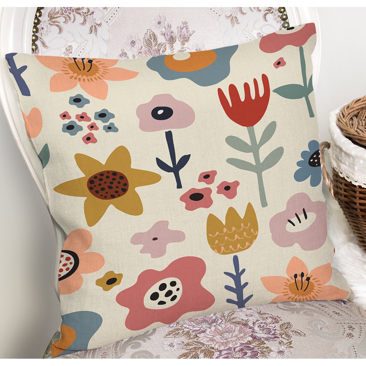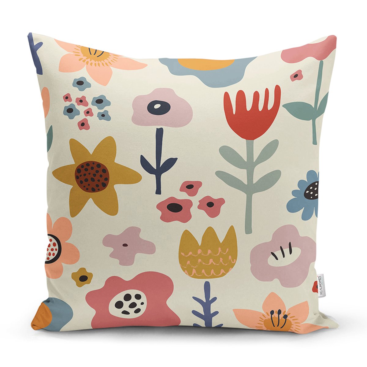 Pastel Zemin Üzerinde Çiçek Desenli Dijital Baskılı Modern Yastık Kırlent Kılıfı