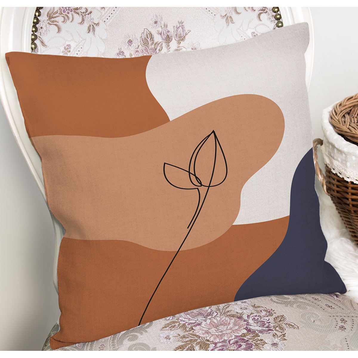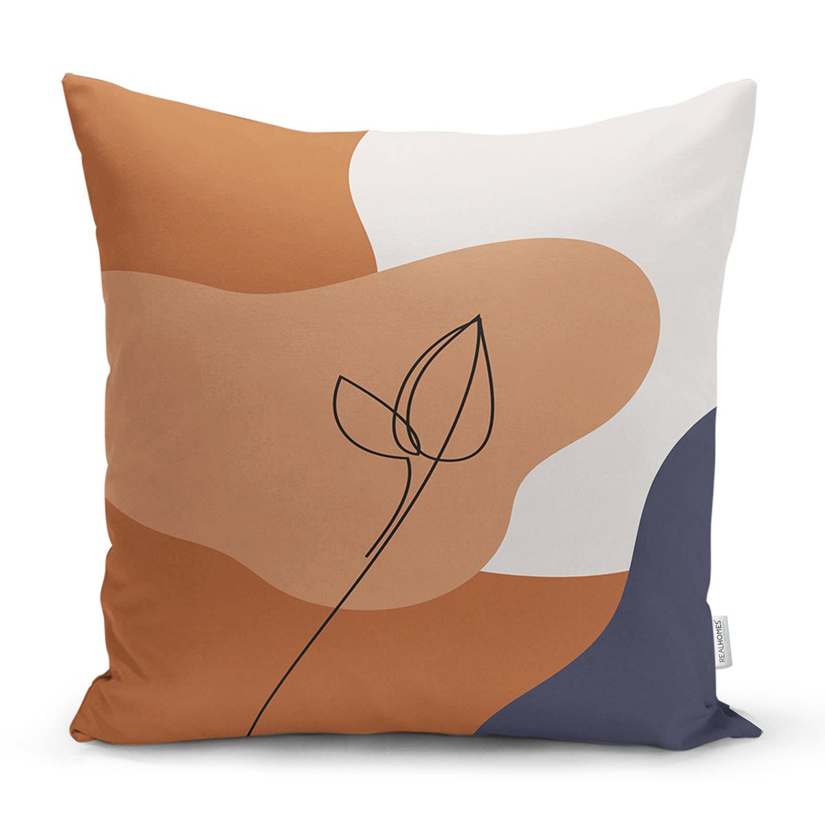 Pastel Zemin Üzerinde Onedraw Çizimli Yaprak Motifli Yastık Kırlent Kılıfı