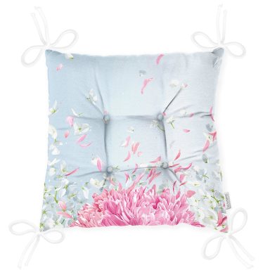 Pastel Zeminli Renkli Ortanca Çiçek Dijital Baskılı Modern Pofidik Sandalye Minderi