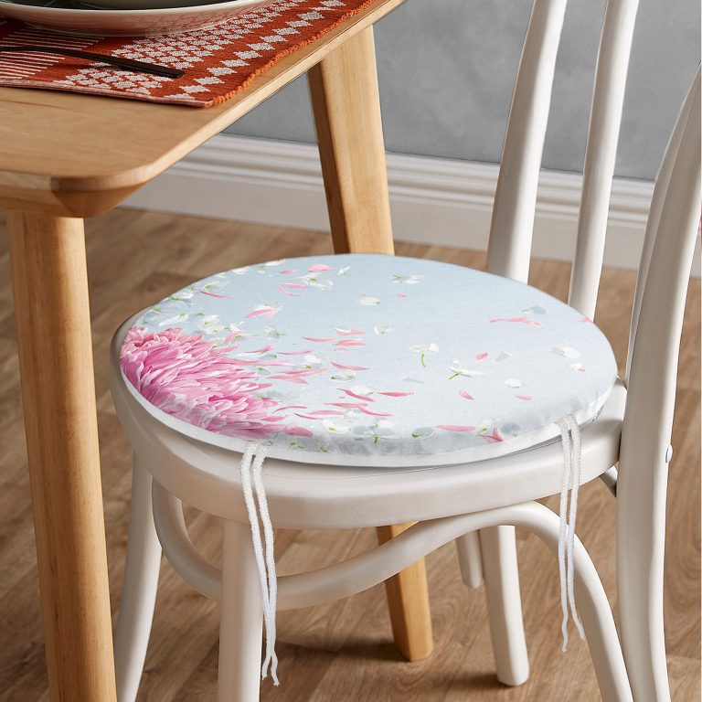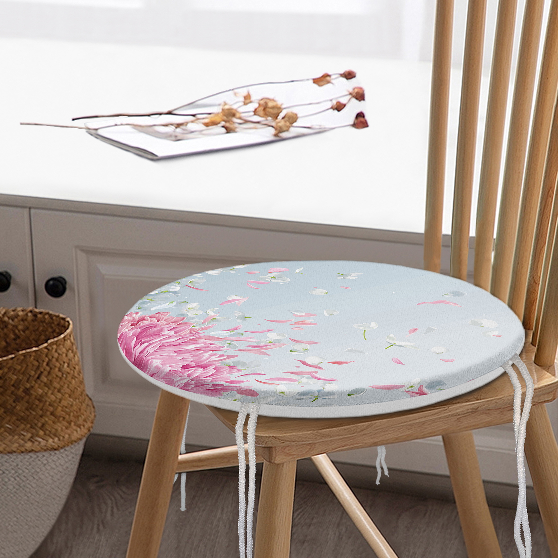 Pastel Zeminli Renkli Ortanca Çiçek Dijital Baskılı Modern Yuvarlak Fermuarlı Sandalye Minderi