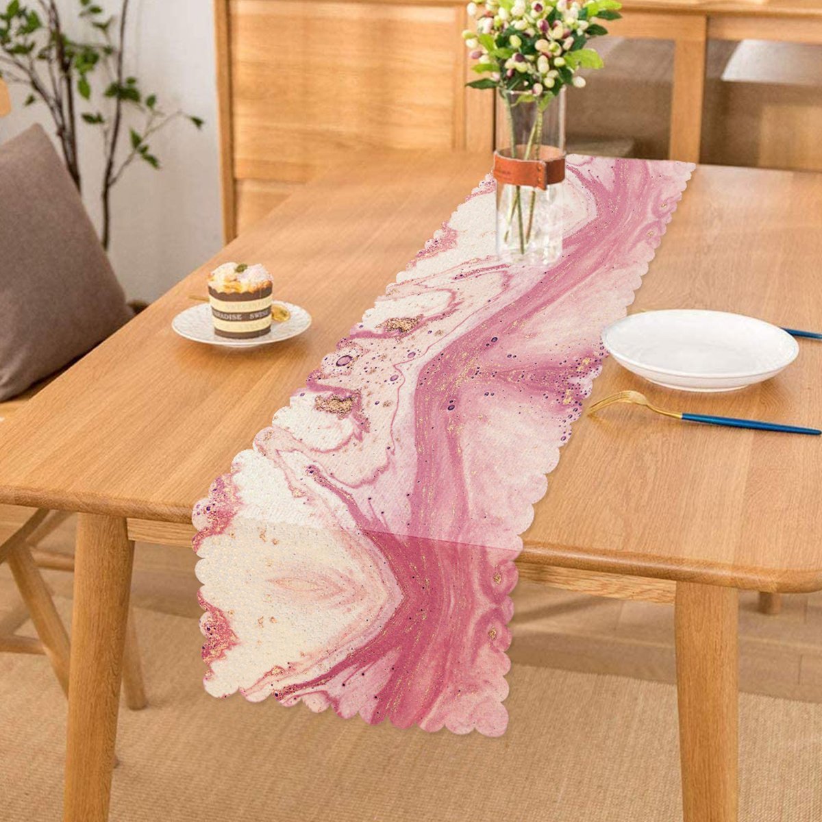 Pembe Beyaz Mermer Desenli Dijital Baskılı Özel Tasarım Runner