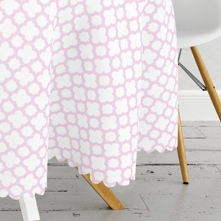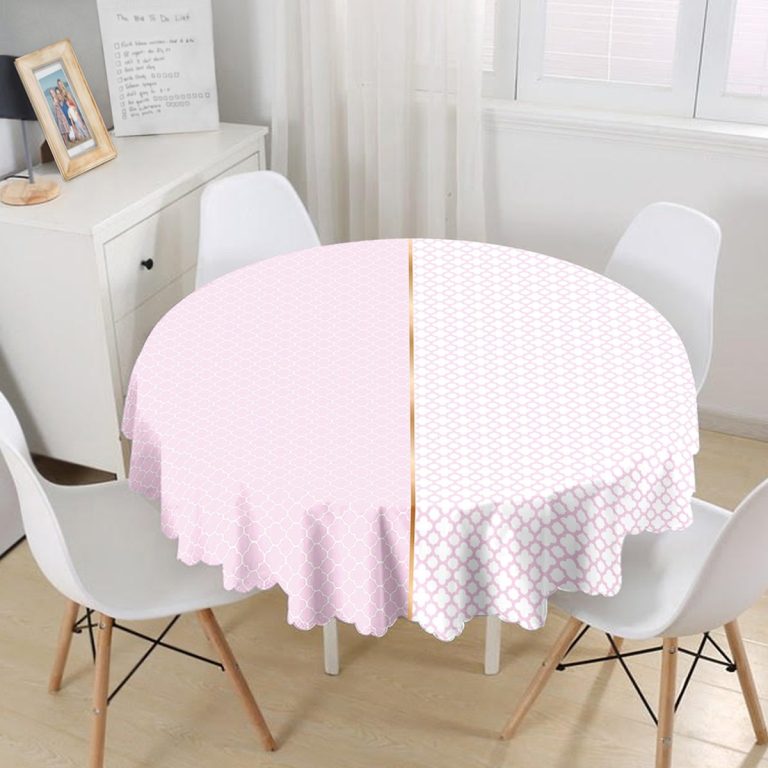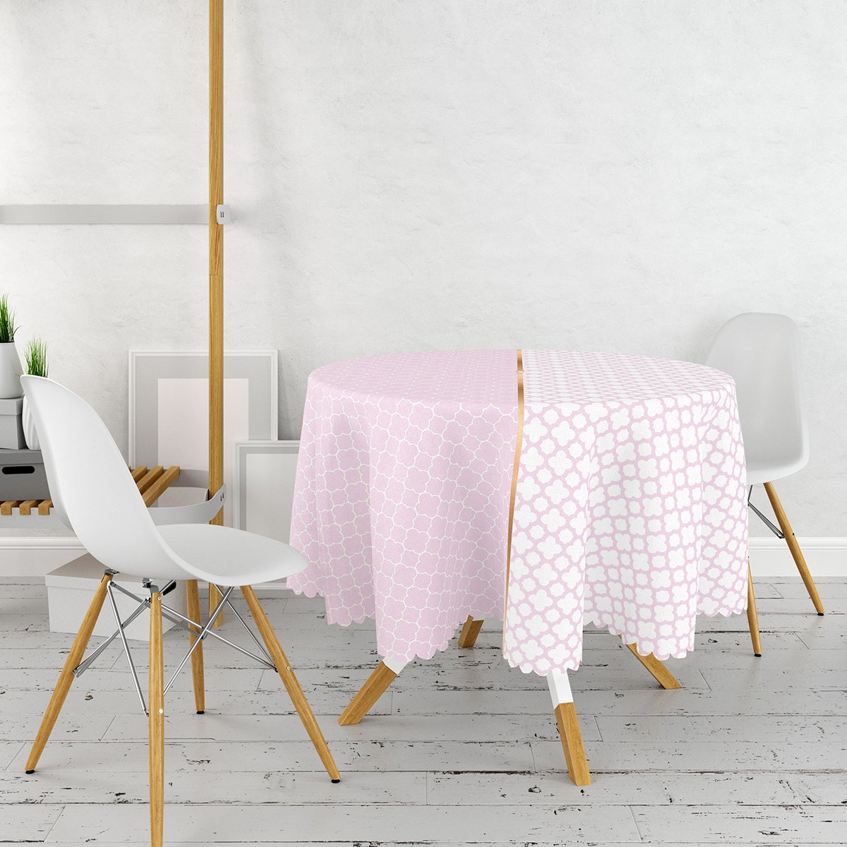 Pembe & Beyaz Ogea Desenli Dijital Baskılı Modern Yuvarlak Masa Örtüsü – Çap 140cm
