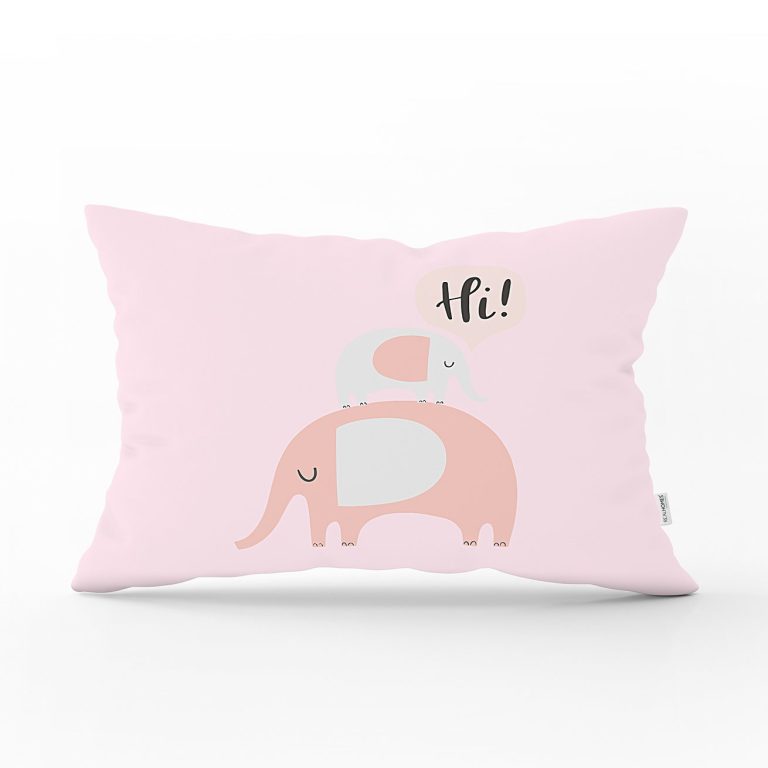 Pembe Beyaz Zeminde Hello Yazılı Bebek Odası Dikdörtgen Yastık Kılıfı