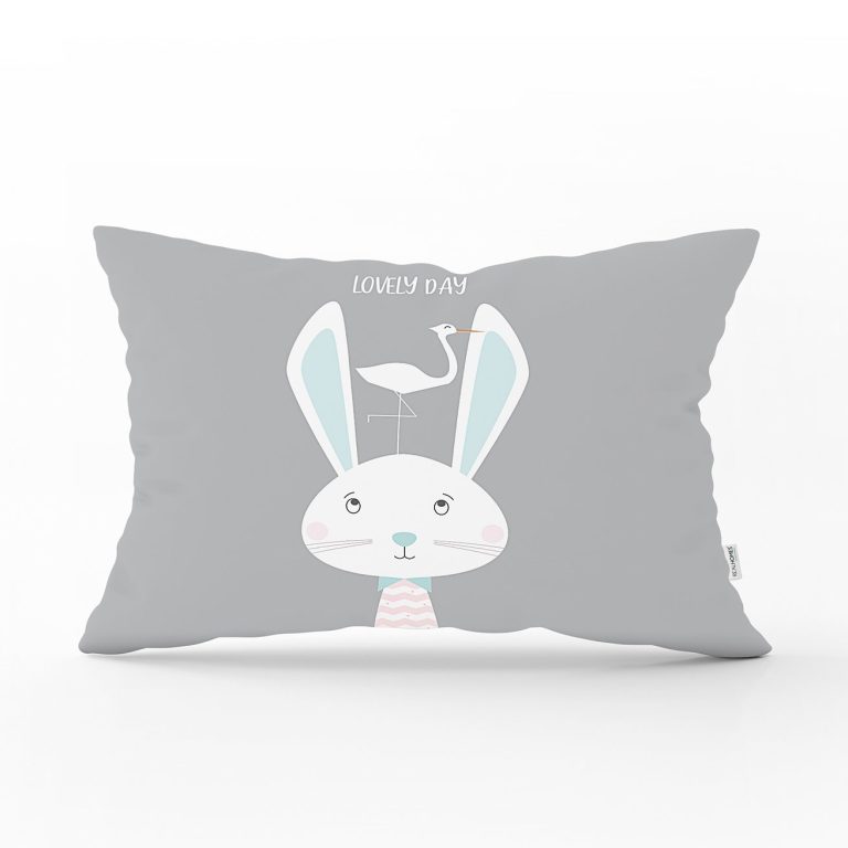 Pembe Gri Çizgili Baby Shower Desenli Bebek Odası Dikdörtgen Yastık Kılıfı