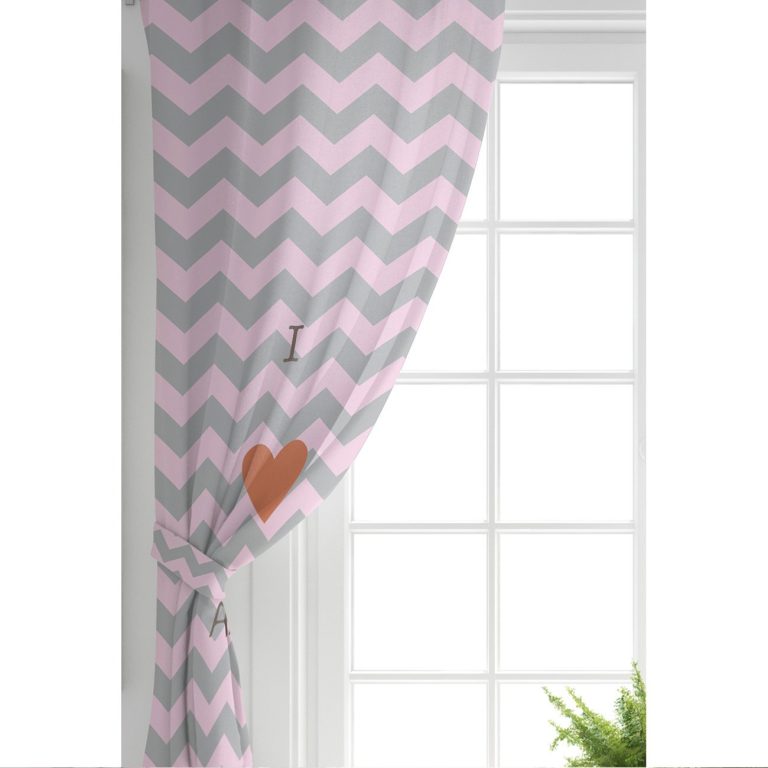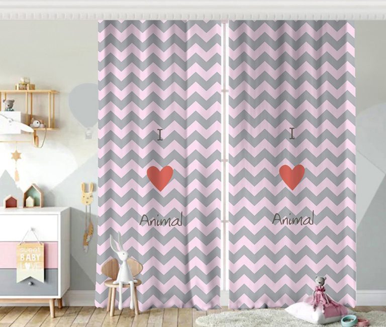 Pembe Gri Zigzaglı I Love Animal Desenli Çocuk Odası Fon Perde