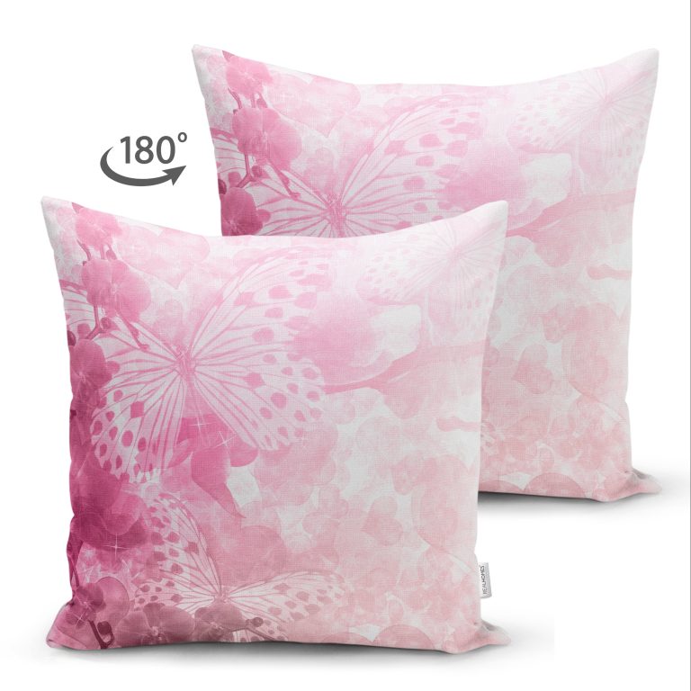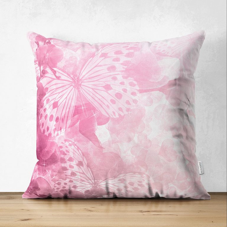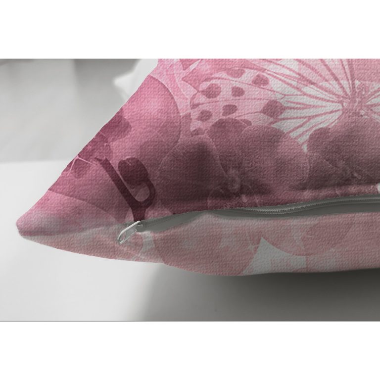 Pembe Kalp Ve Kelebek Temalı Dijital Baskılı Dekoratif Süet Yastık Kırlent Kılıfı