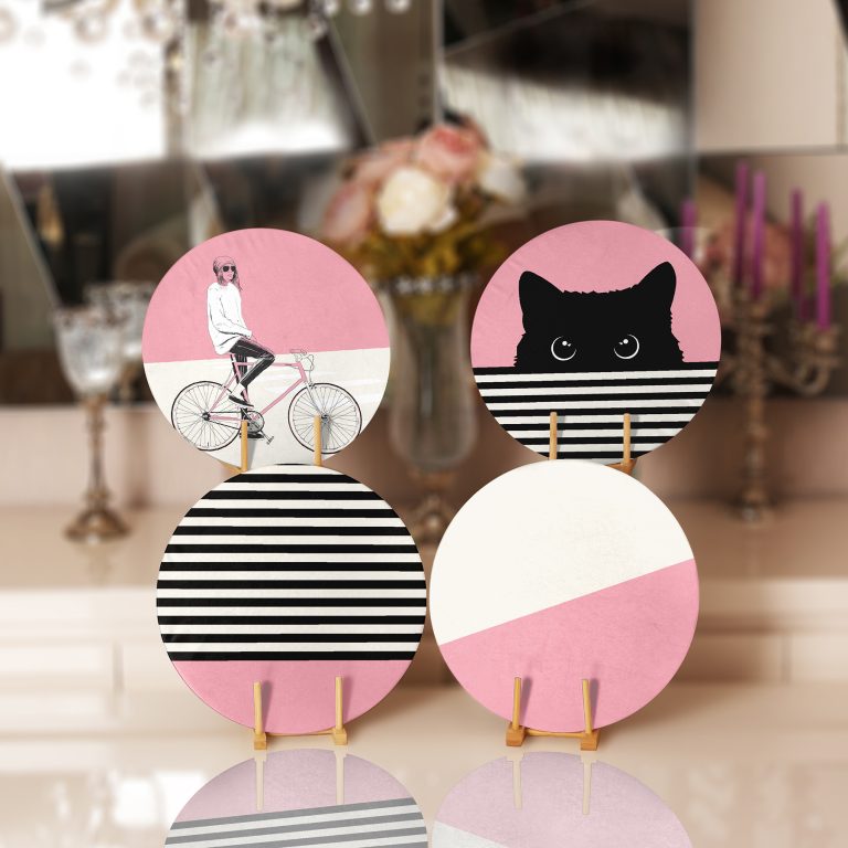 Pembe Kedili Bisikletli Adam Dijital Baskılı Yuvarlak Servis Altlığı & Supla