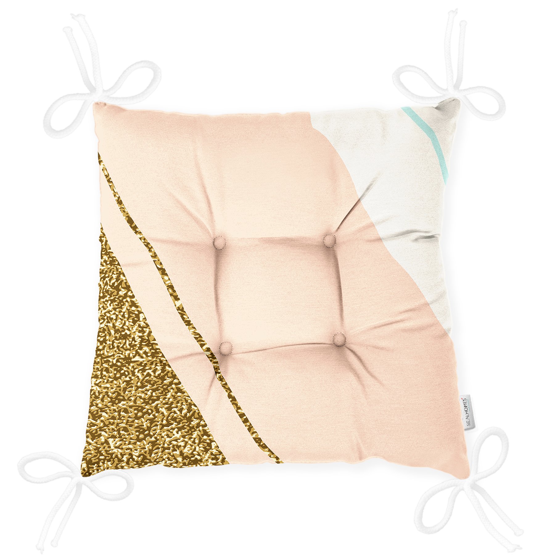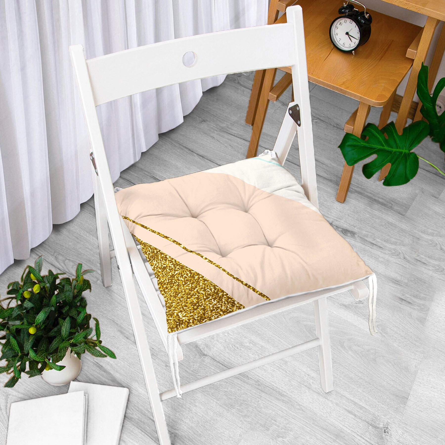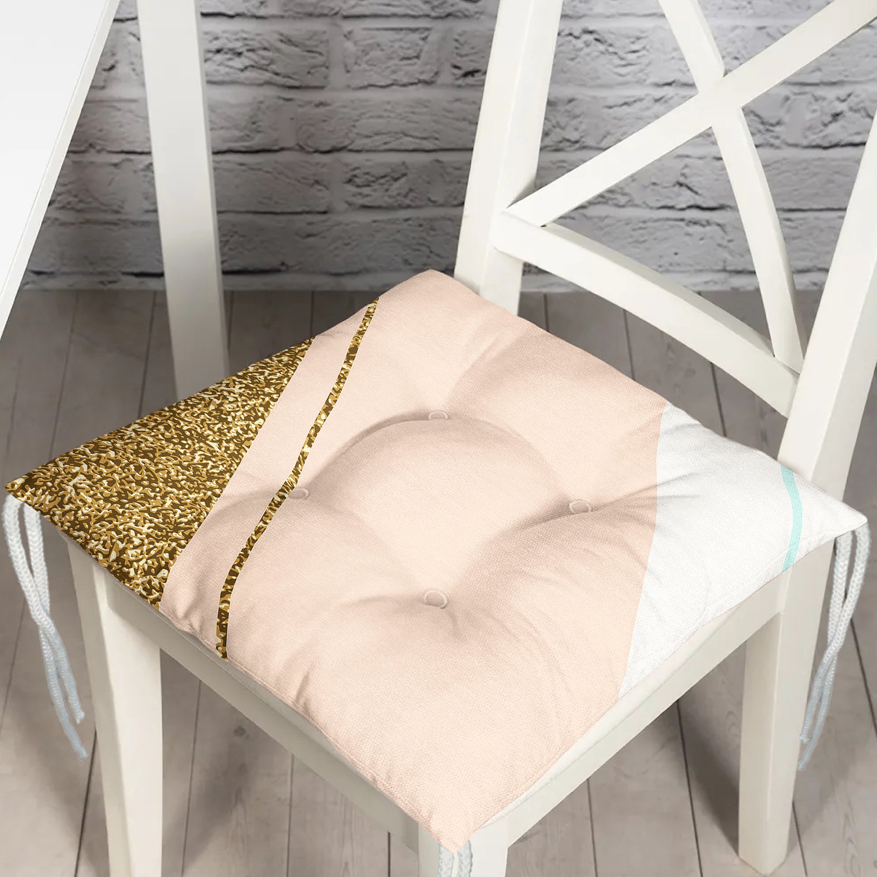 Pembe Krem Gold Motifli Dijital Baskılı Modern Pofidik Sandalye Minderi