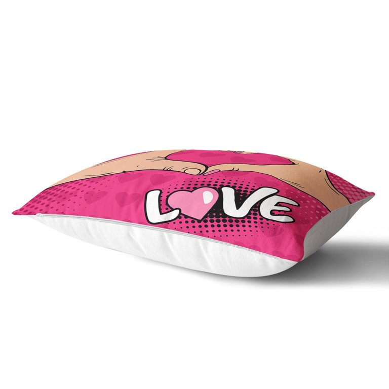 Pembe Love Popart Tasarımlı Dijital Baskılı Dikdörtgen Yastık Kırlent Kılıfı