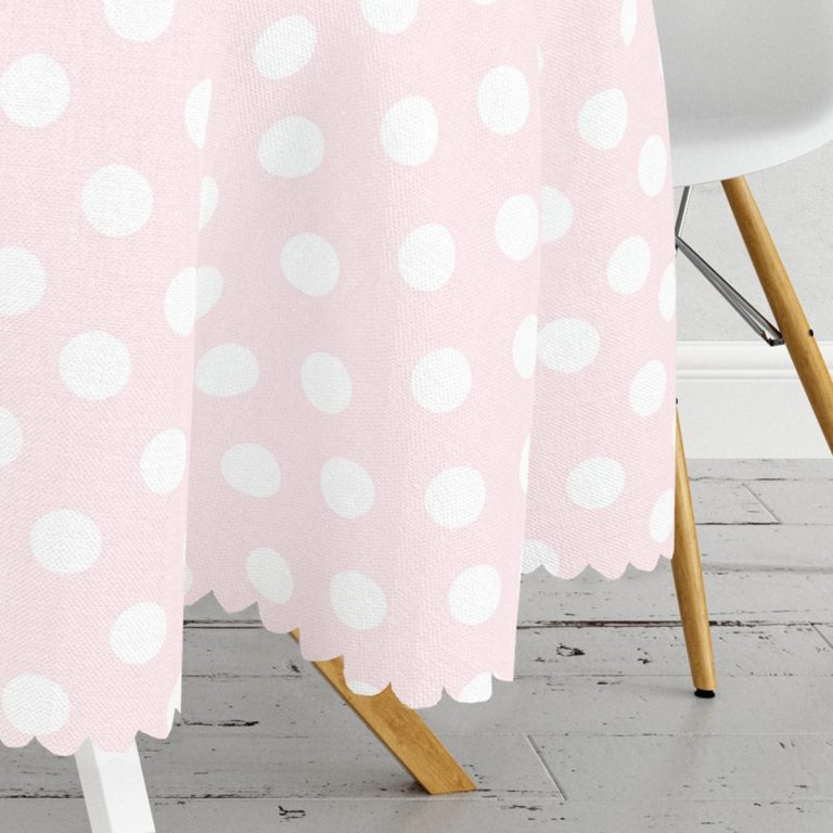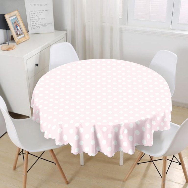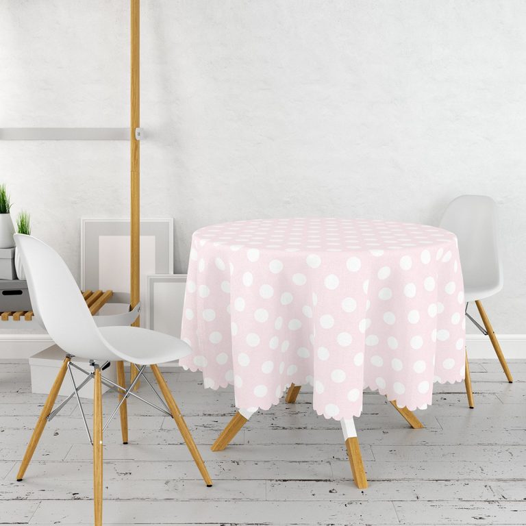 Pembe Puantiyeli Dijital Baskılı Yuvarlak Masa Örtüsü – Çap 140cm