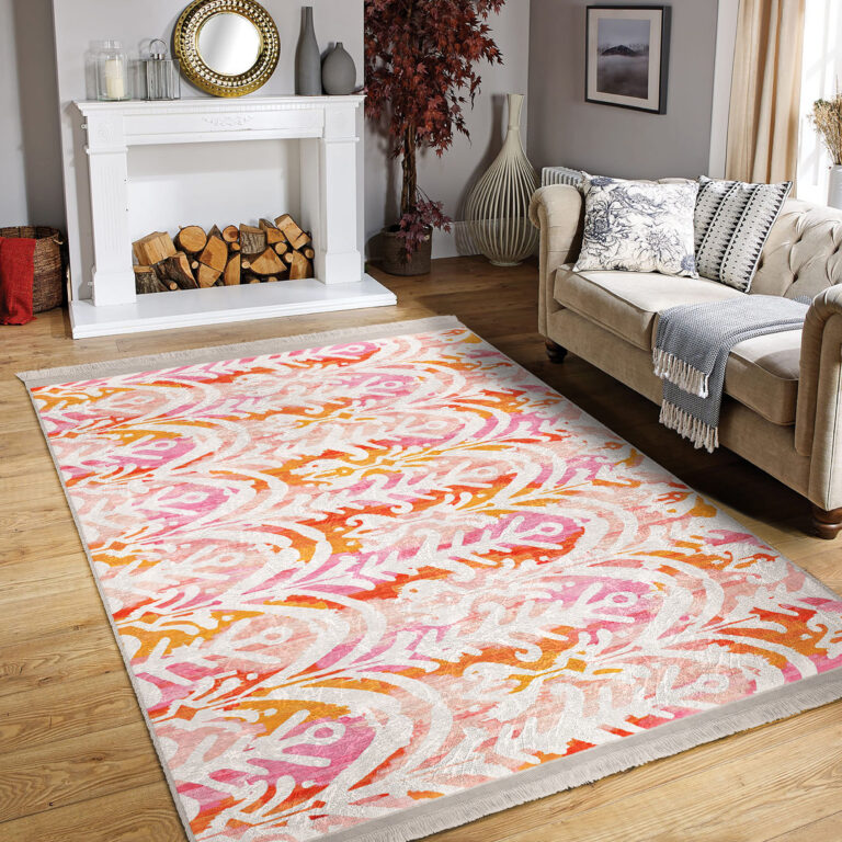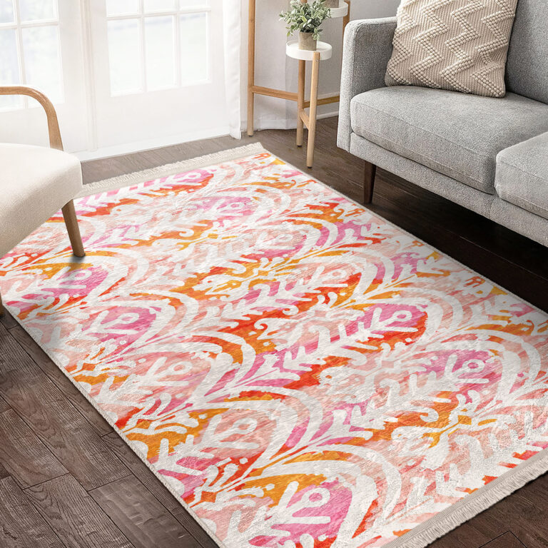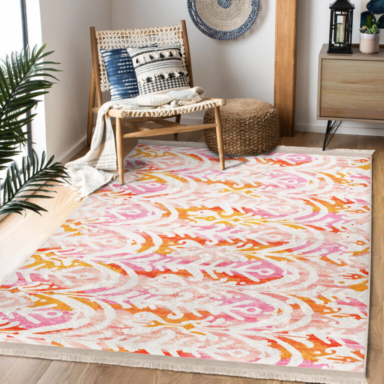 Pembe – Turuncu Geometrik Desenli Makinede Yıkanabilir Kaymaz Taban Salon Halısı