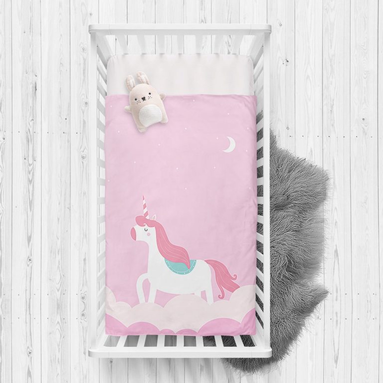 Pembe Unicorn At Desenli Dijital Baskılı Bebek Odası Yatak Örtüsü