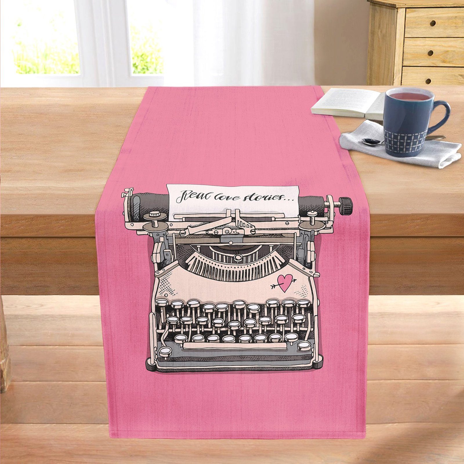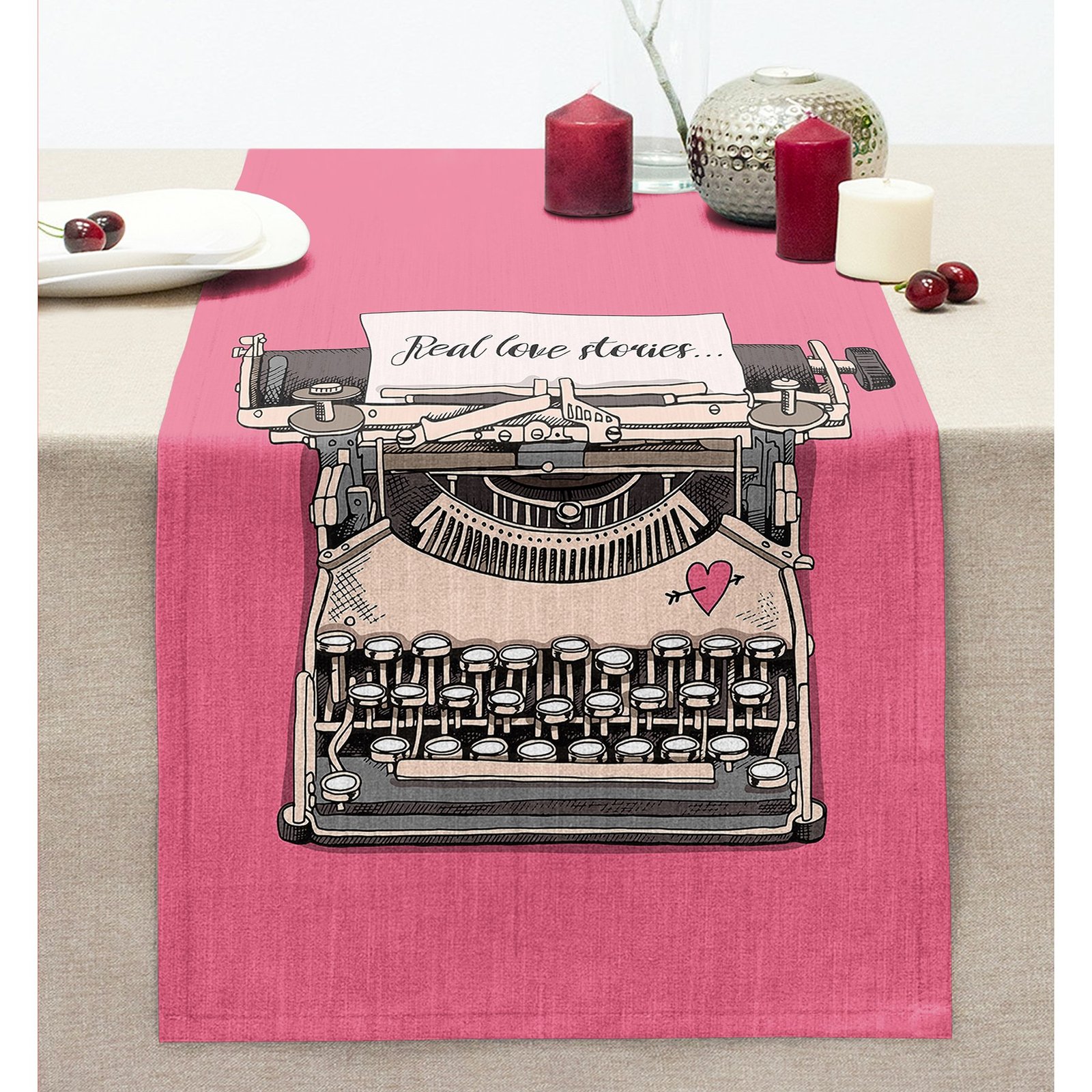 Pembe Zemin Daktilo Tasarımlı Dijital Baskılı Modern Dikişli Şönil Runner