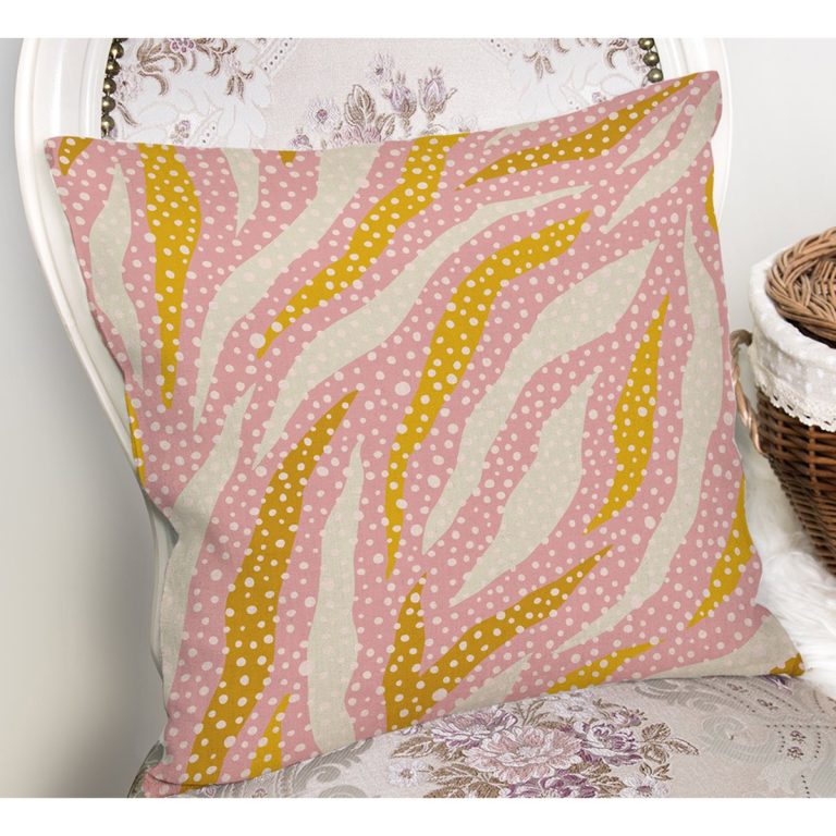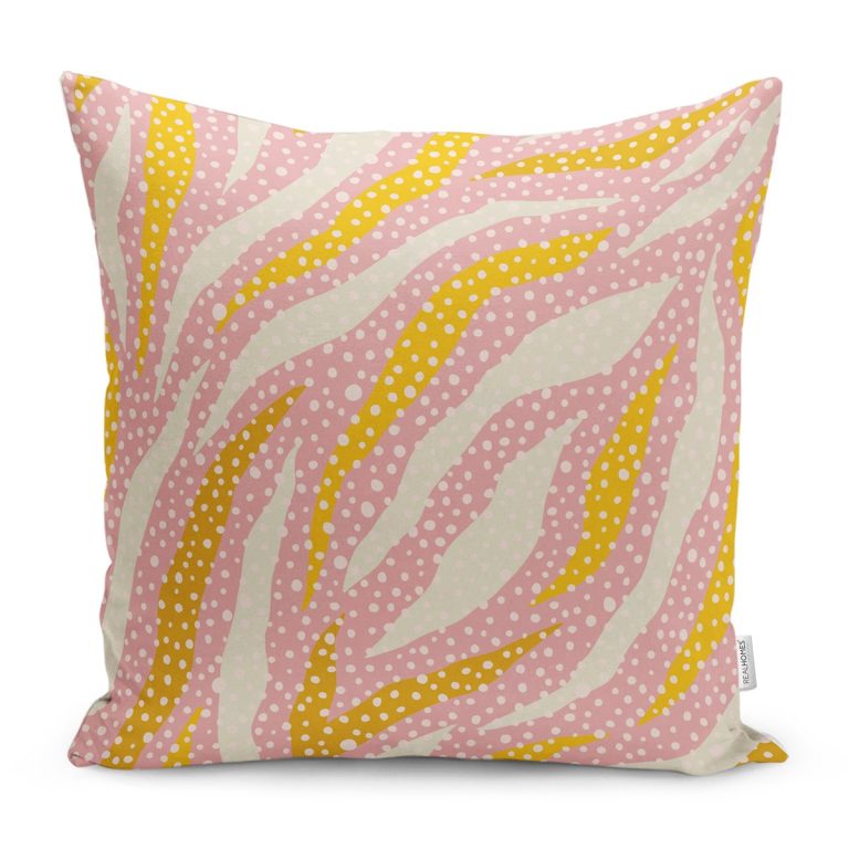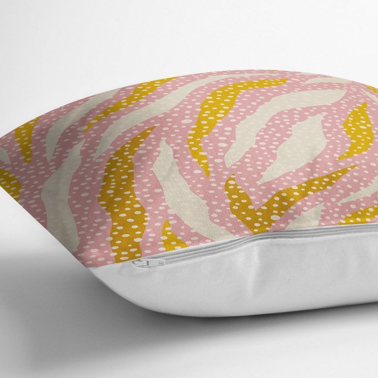 Pembe Zemin Puantiyeli Zebra Desen Motifli Yastık Kırlent Kılıfı