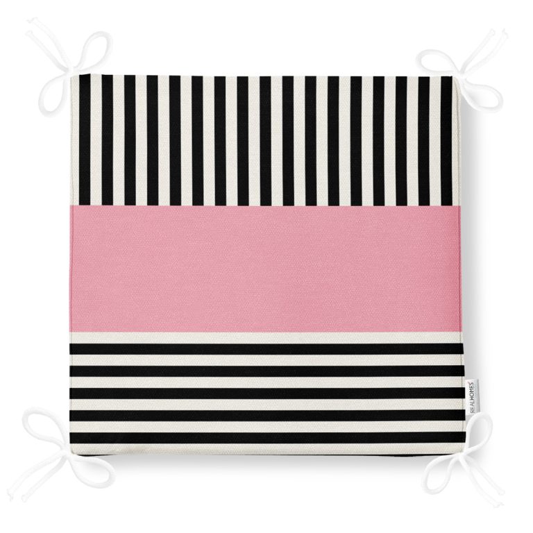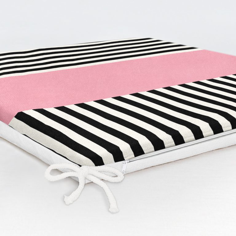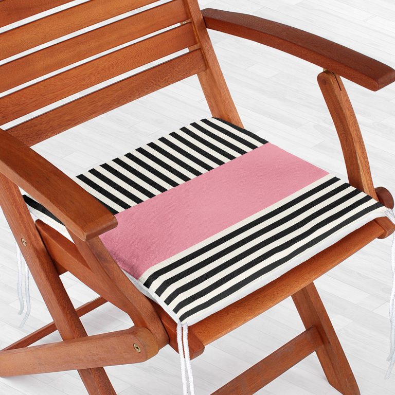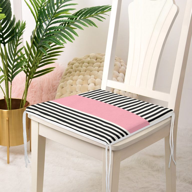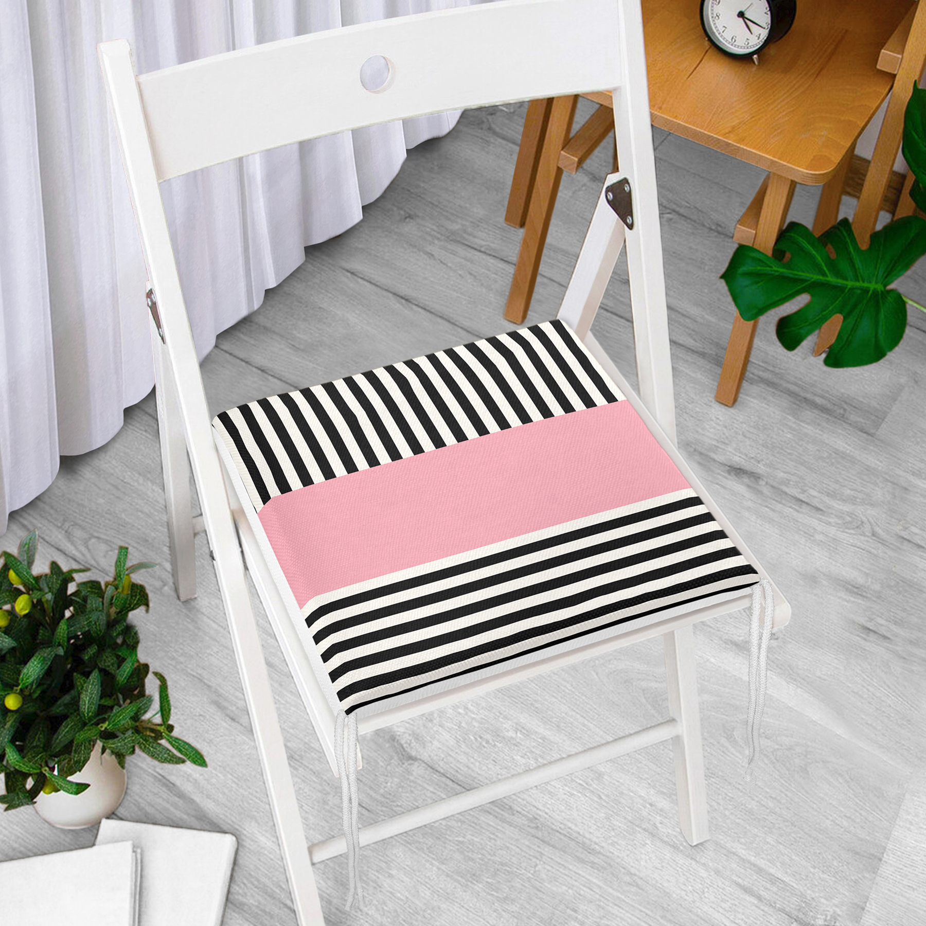 Pembe Zemin Siyah Çizgili Dijital Baskılı Modern Fermuarlı Sandalye Minderi