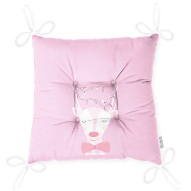 Pembe Zemin Uyuyan Geyik Desenli Özel Tasarımlı Dijital Baskılı Çocuk Odası Pofidik Sandalye Minderi