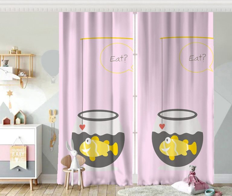 Pembe Zeminde Akvaryum Temalı Çocuk Odası Fon Perde