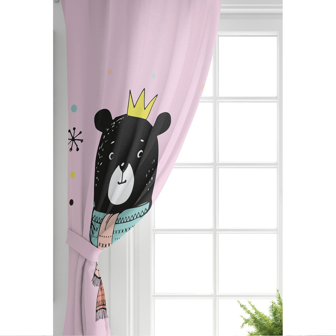 Pembe Zeminde Atkılı Ayıcık Desenli Bebek Odası Fon Perde