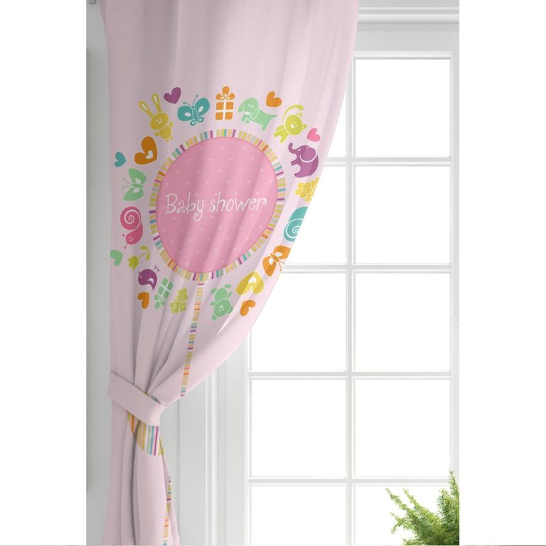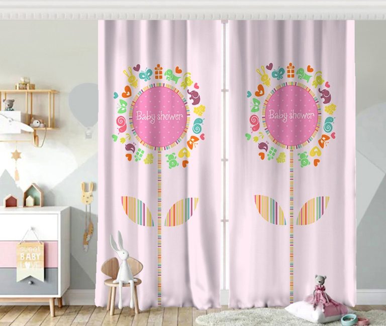 Pembe Zeminde Baby Shower Tasarımlı Çocuk Odası Fon Perde