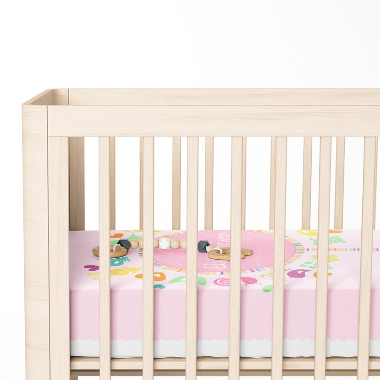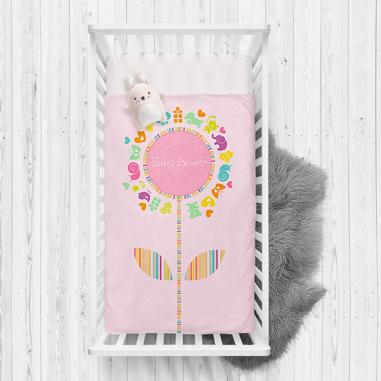 Pembe Zeminde Baby Shower Tasarımlı Çocuk Odası Yatak Örtüsü