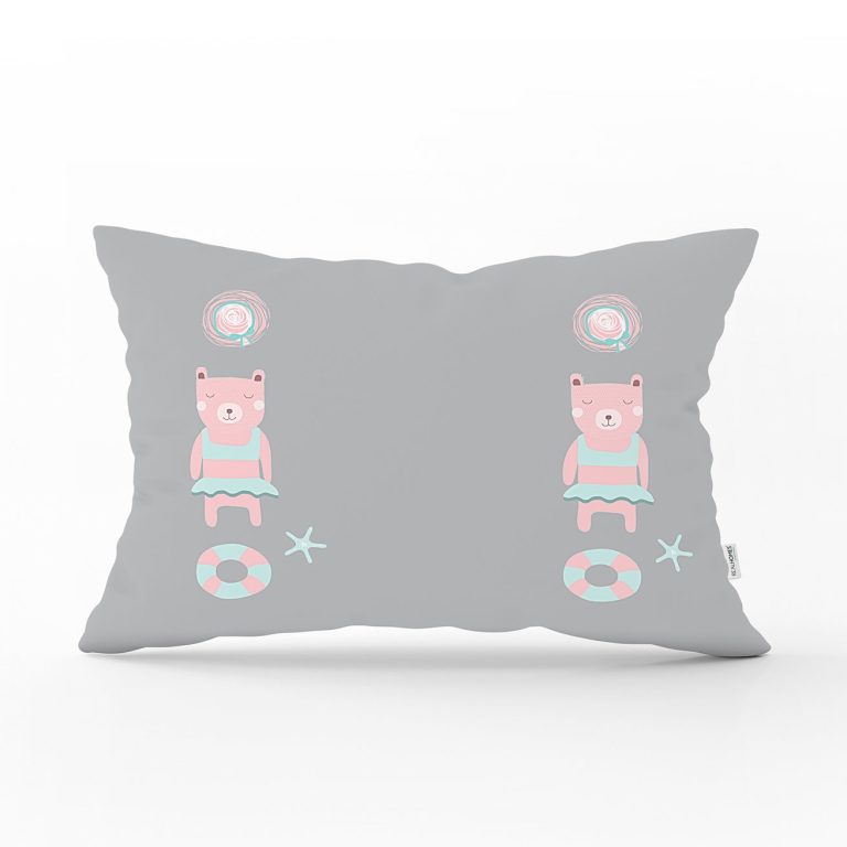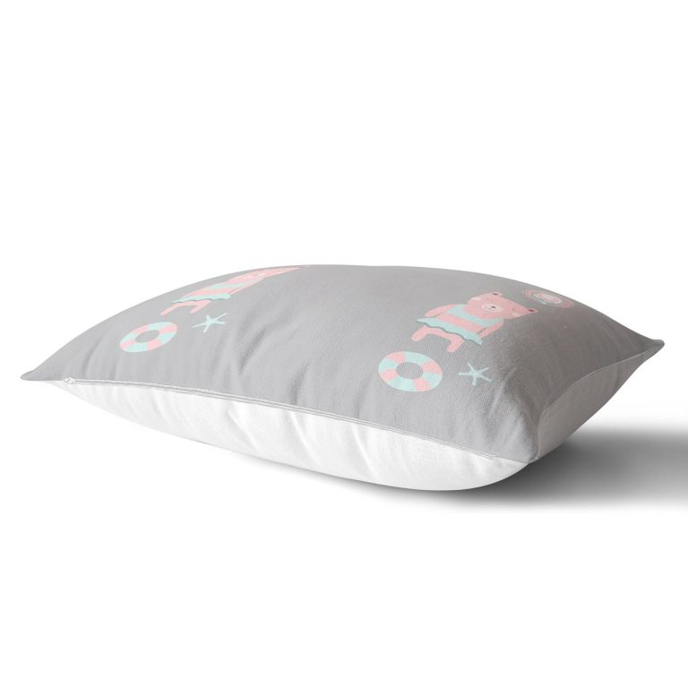 Pembe Zeminde Deniz ve Ayıcık Desenli Bebek Odası Dikdörtgen Yastık Kılıfı