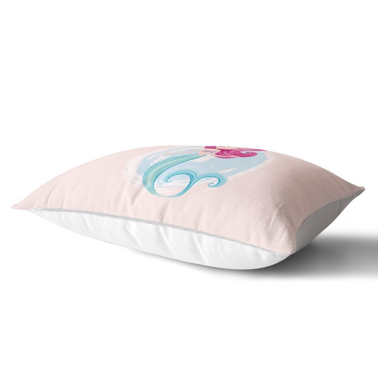 Pembe Zeminde Denizkızı Desenli Dijital Baskılı Çocuk Odası Dikdörtgen Yastık Kılıfı