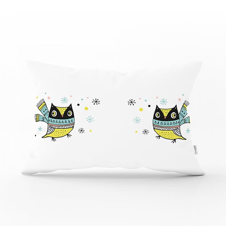 Pembe Zeminde Kardan adam Çizim Desenli Bebek Odası Dikdörtgen Yastık Kılıfı