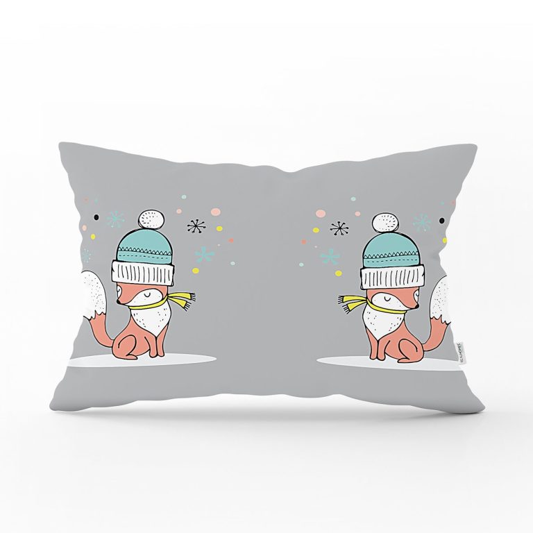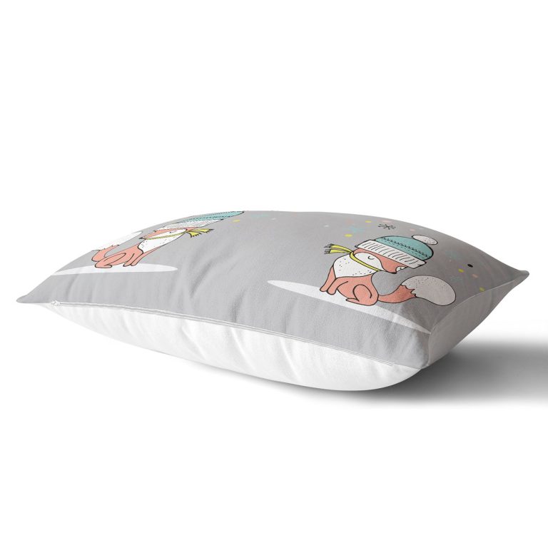 Pembe Zeminde Sevimli Tilki Desenli Bebek Odası Dikdörtgen Yastık Kılıfı