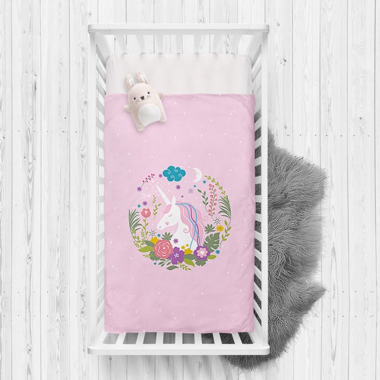 Pembe Zeminde Unicorn At Desenli Çocuk Odası Yatak Örtüsü