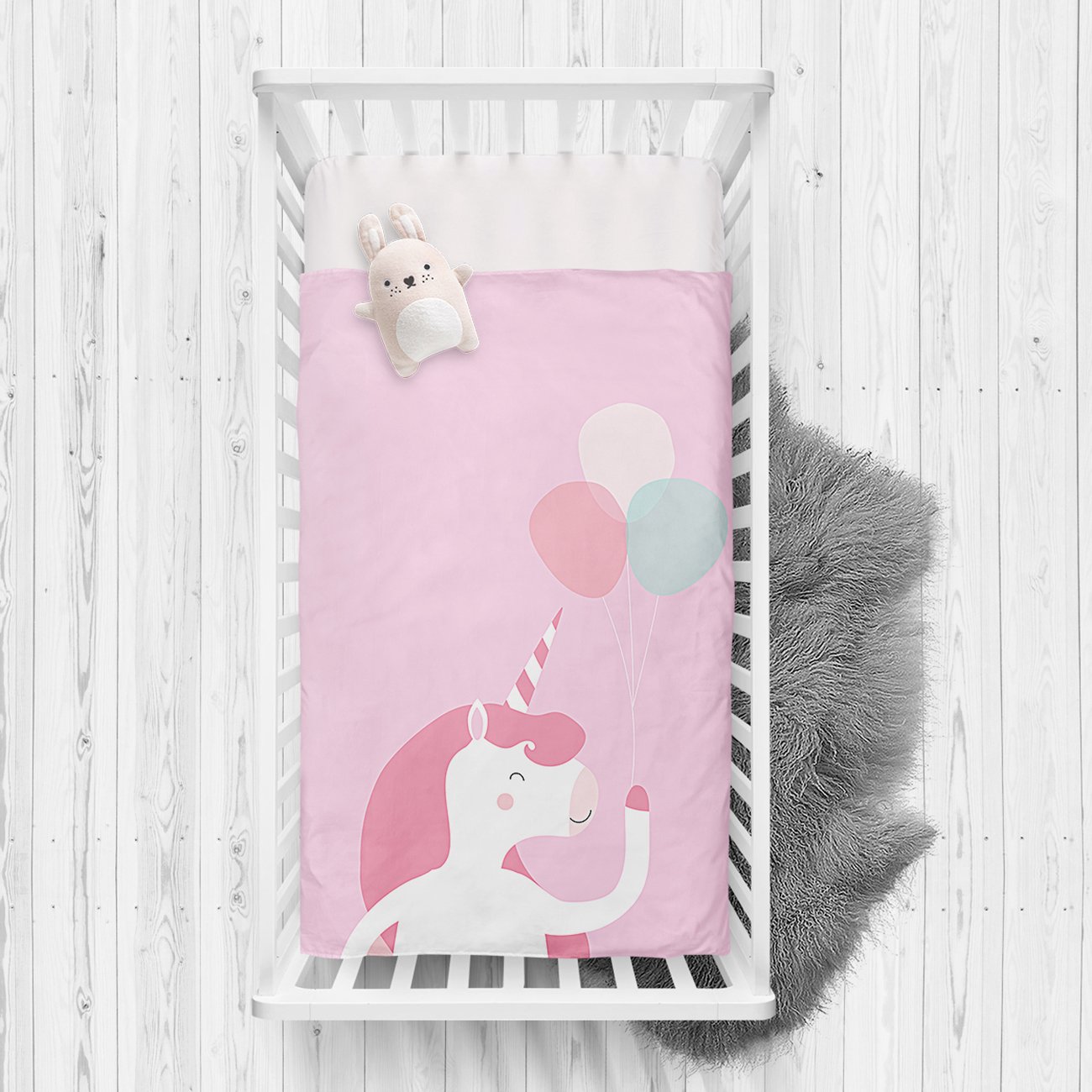 Pembe Zeminde Unicorn At Tasarımlı Bebek Odası Yatak Örtüsü
