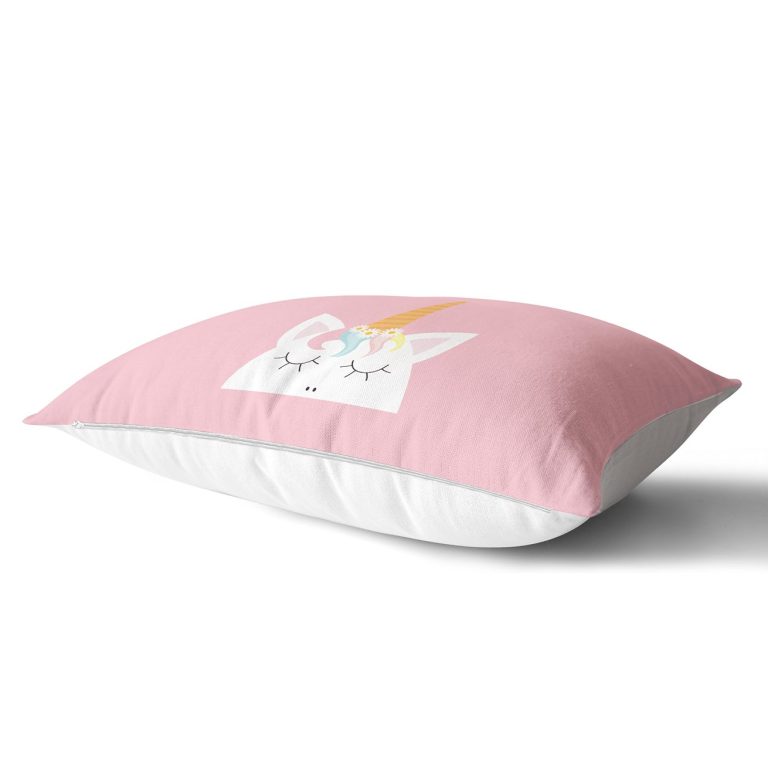 Pembe Zeminde Unicorn Desenli Çocuk Odası Dikdörtgen Yastık Kılıfı