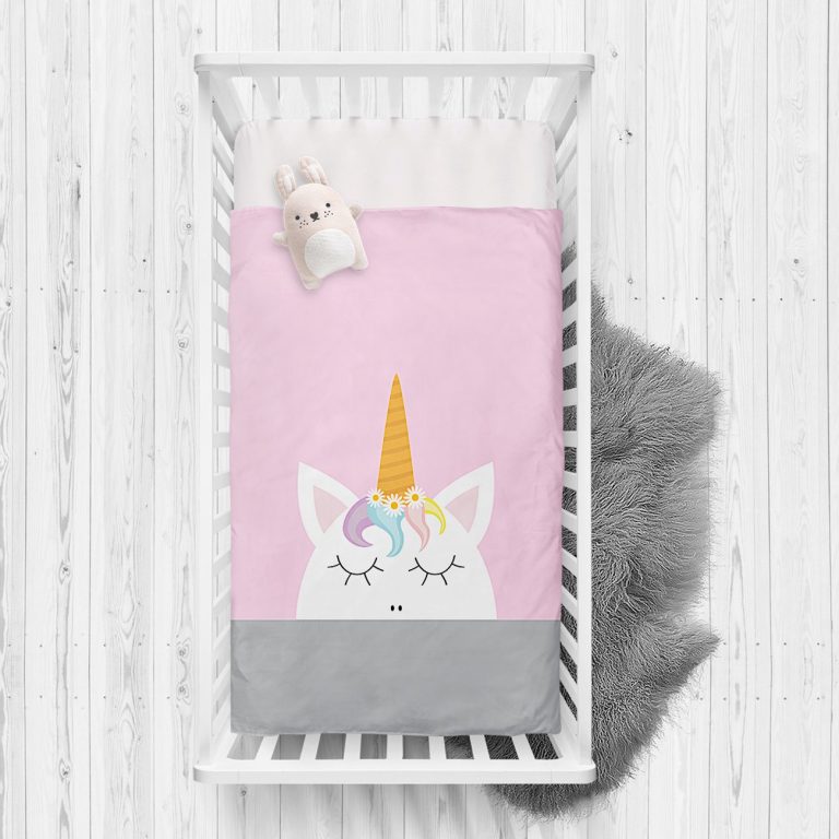 Pembe Zeminde Unicorn Desenli Çocuk Odası Yatak Örtüsü