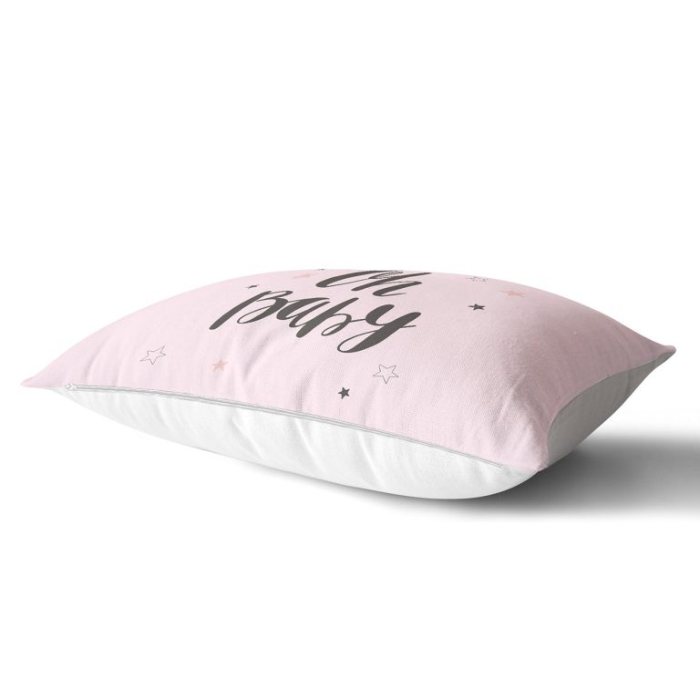 Pembe Zeminde Yıldızlar ve Mavi Bulut Tasarımlı Bebek Odası Dikdörtgen Yastık Kılıfı