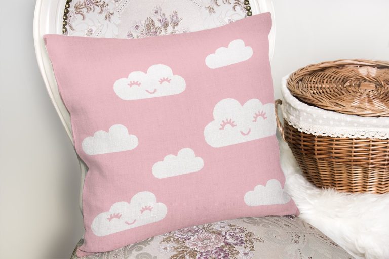 Pembe Zeminli Bulut Desenli Dijital Baskılı Kırlent Kılıfı