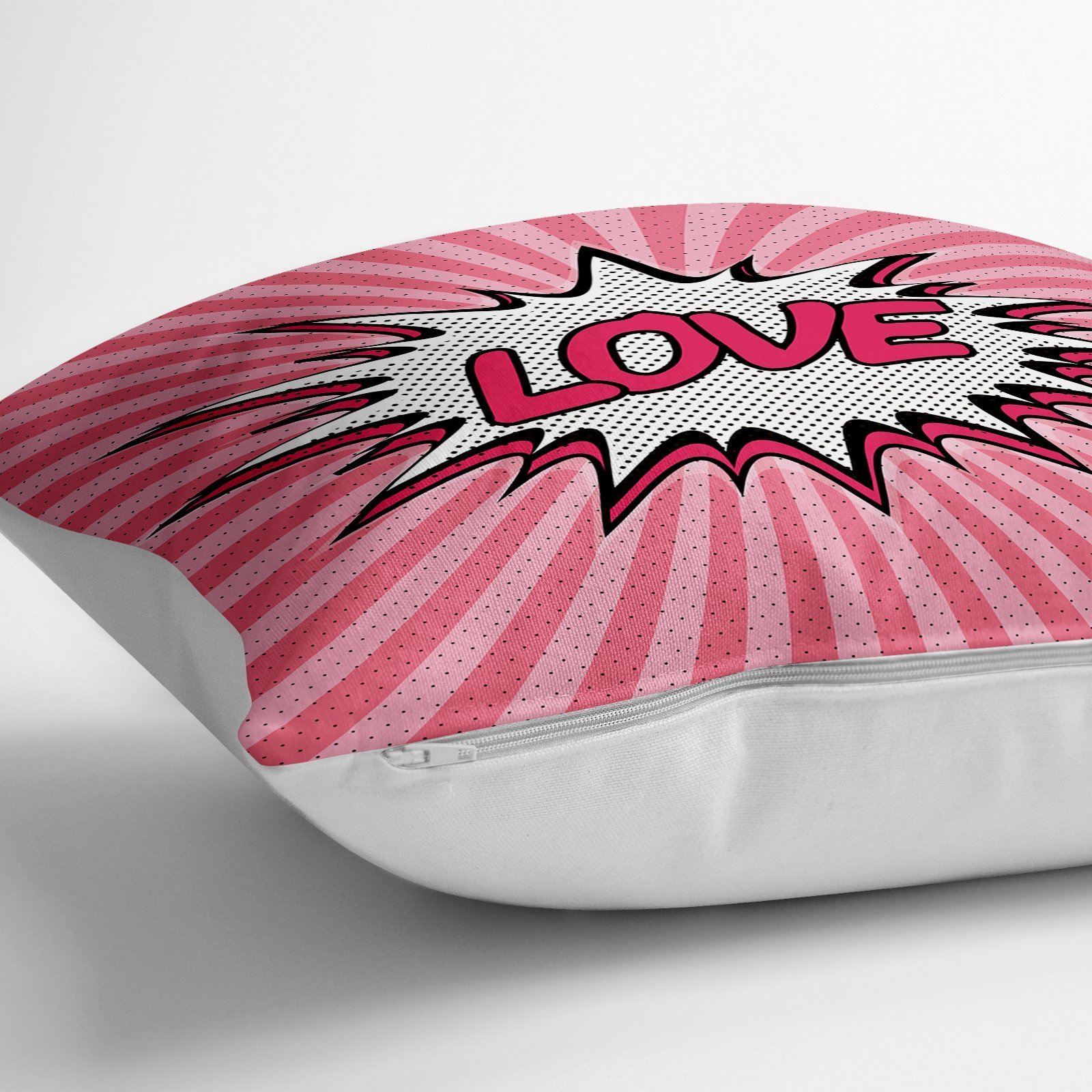 Pembe Zeminli Love Desenli Dijital Baskılı Dekoratif Yer Minderi – 70 x 70 cm