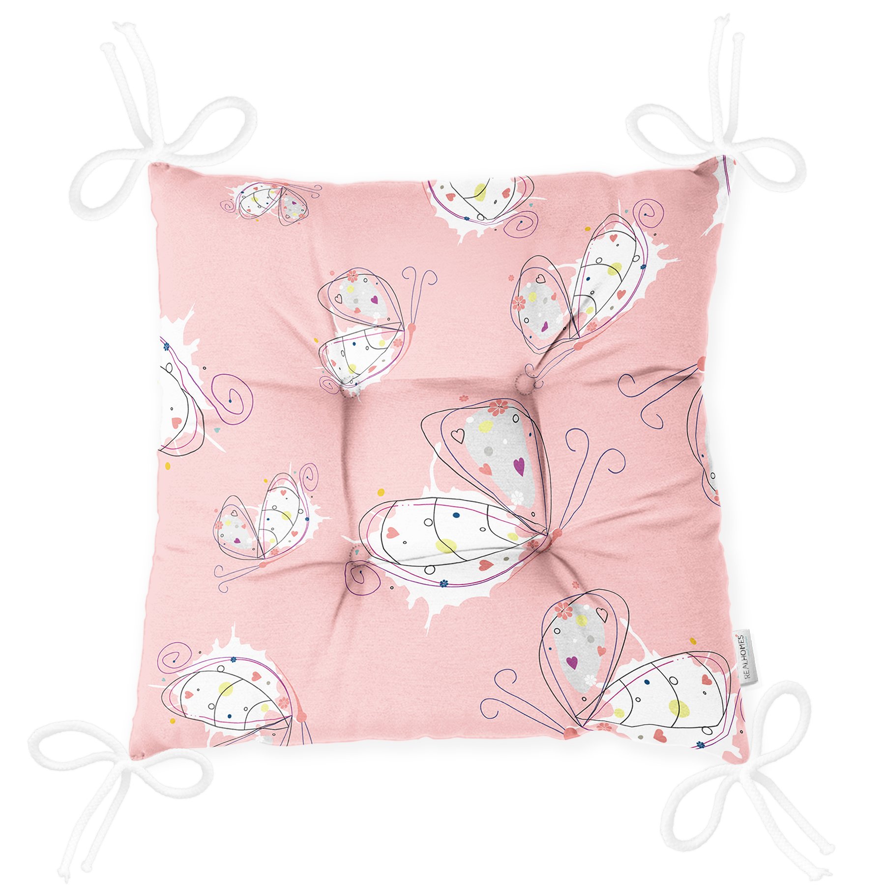 Pembe Zeminli Sevimli Kelebek Motifli Dijital Baskılı Özel Tasarım Modern Pofidik Sandalye Minderi