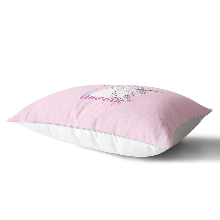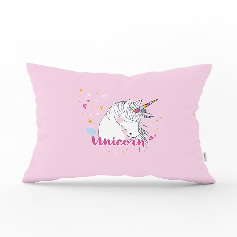Pembe Zeminli Unicorn At Desenli Dekoratif Çocuk Odası Dikdörtgen Yastık Kılıfı
