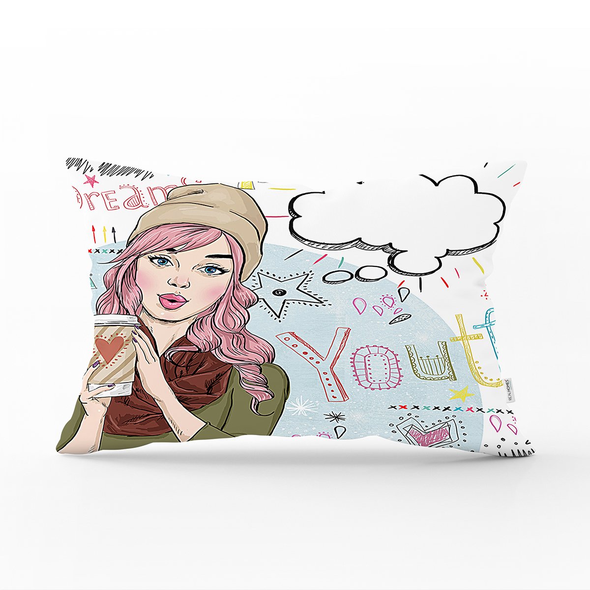 Pop Art Resimli Dijital Baskılı Dekoratif Dikdörtgen Yastık Kırlent Kılıfı