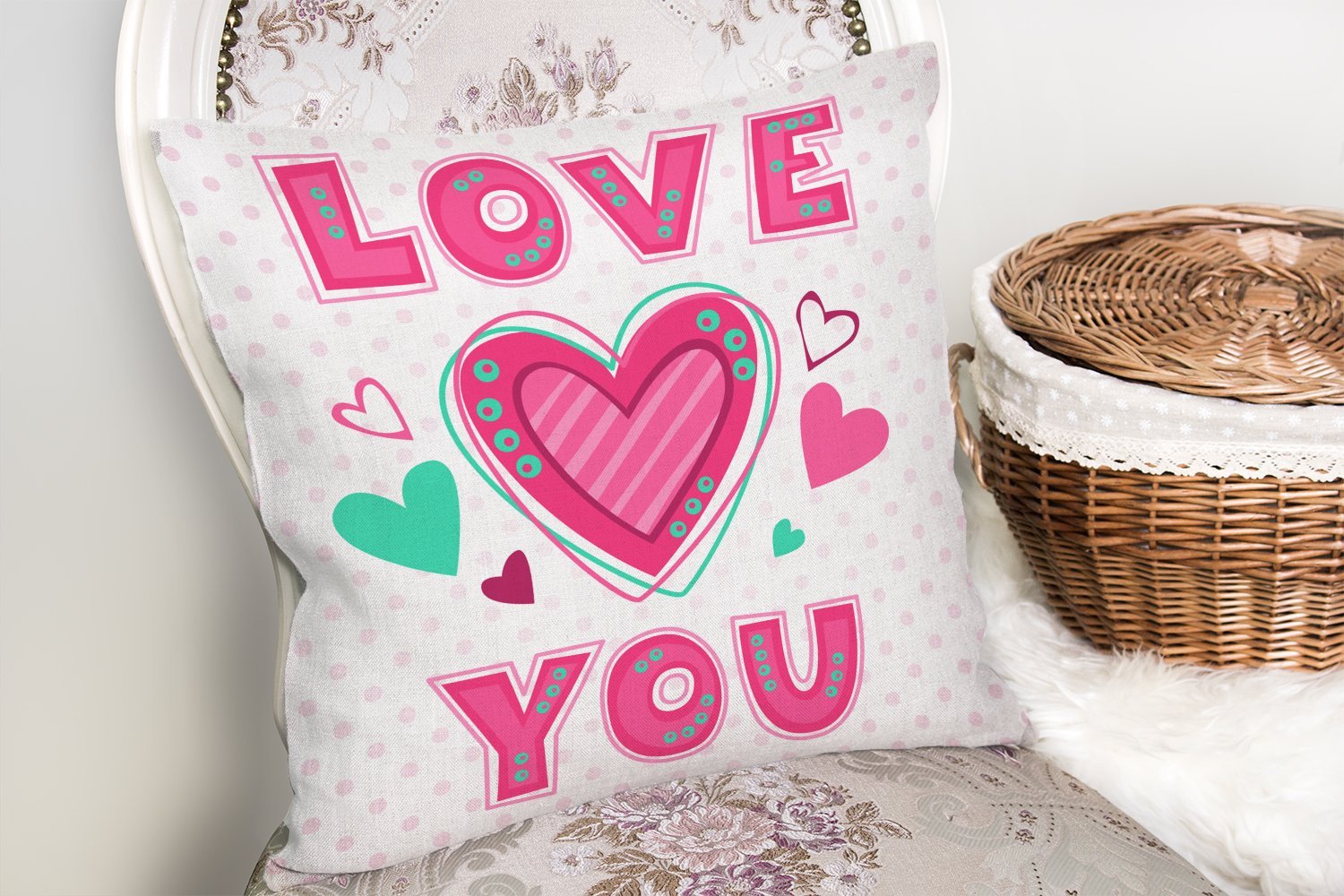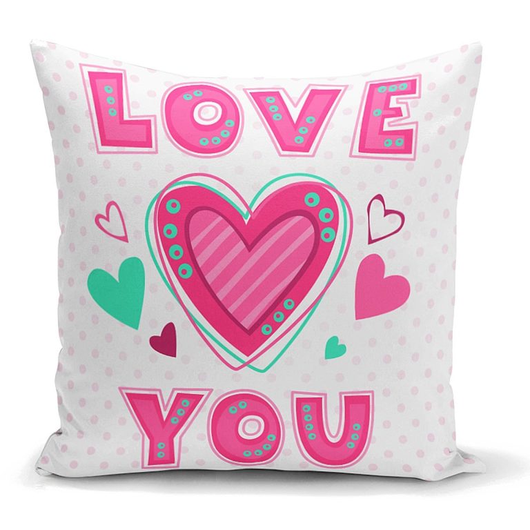 Puanlı Love You Baskıılı Dijital Baskılı Kırlent Kılıfı