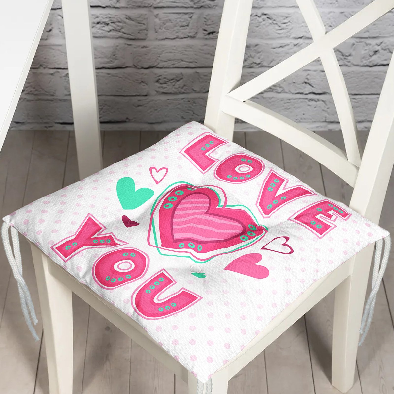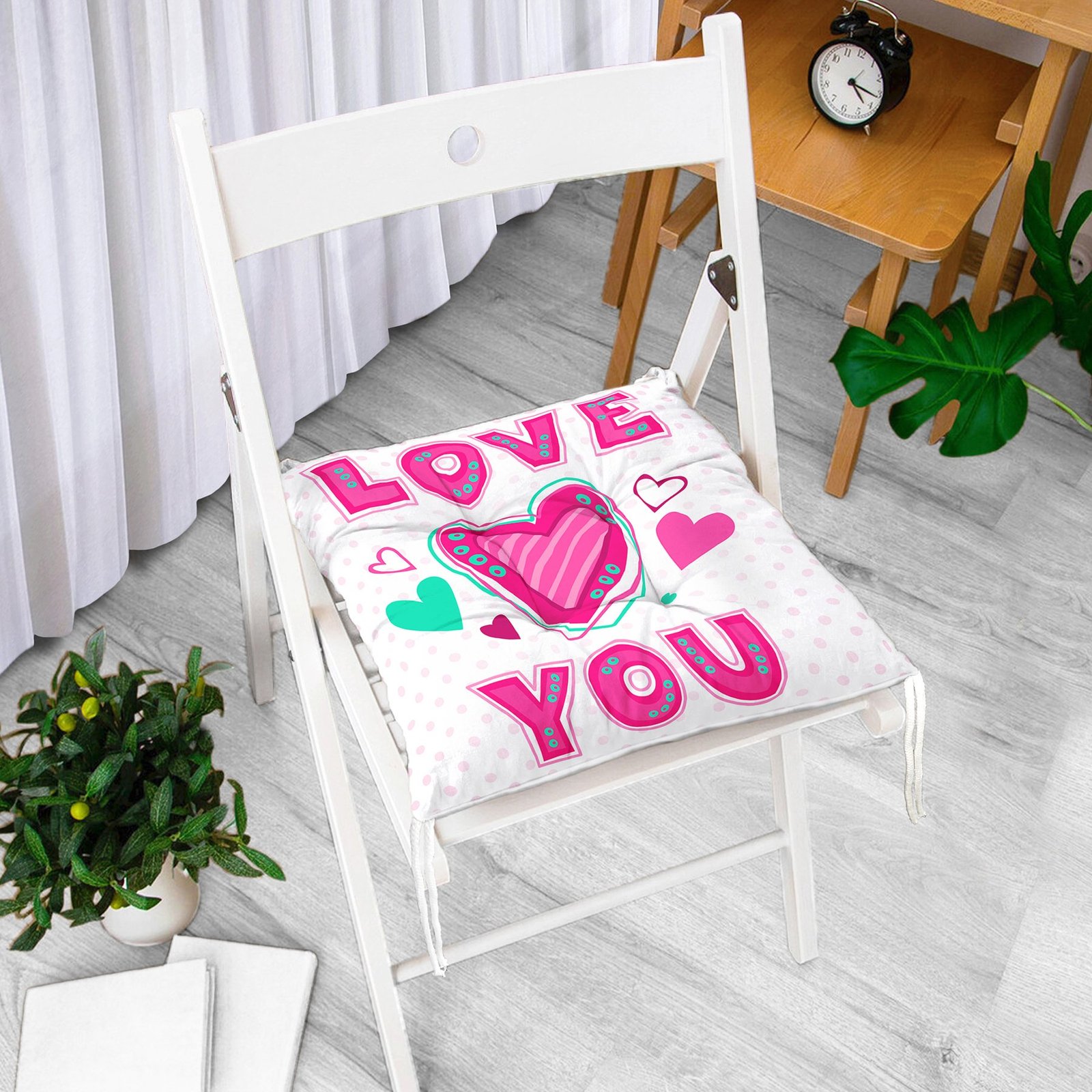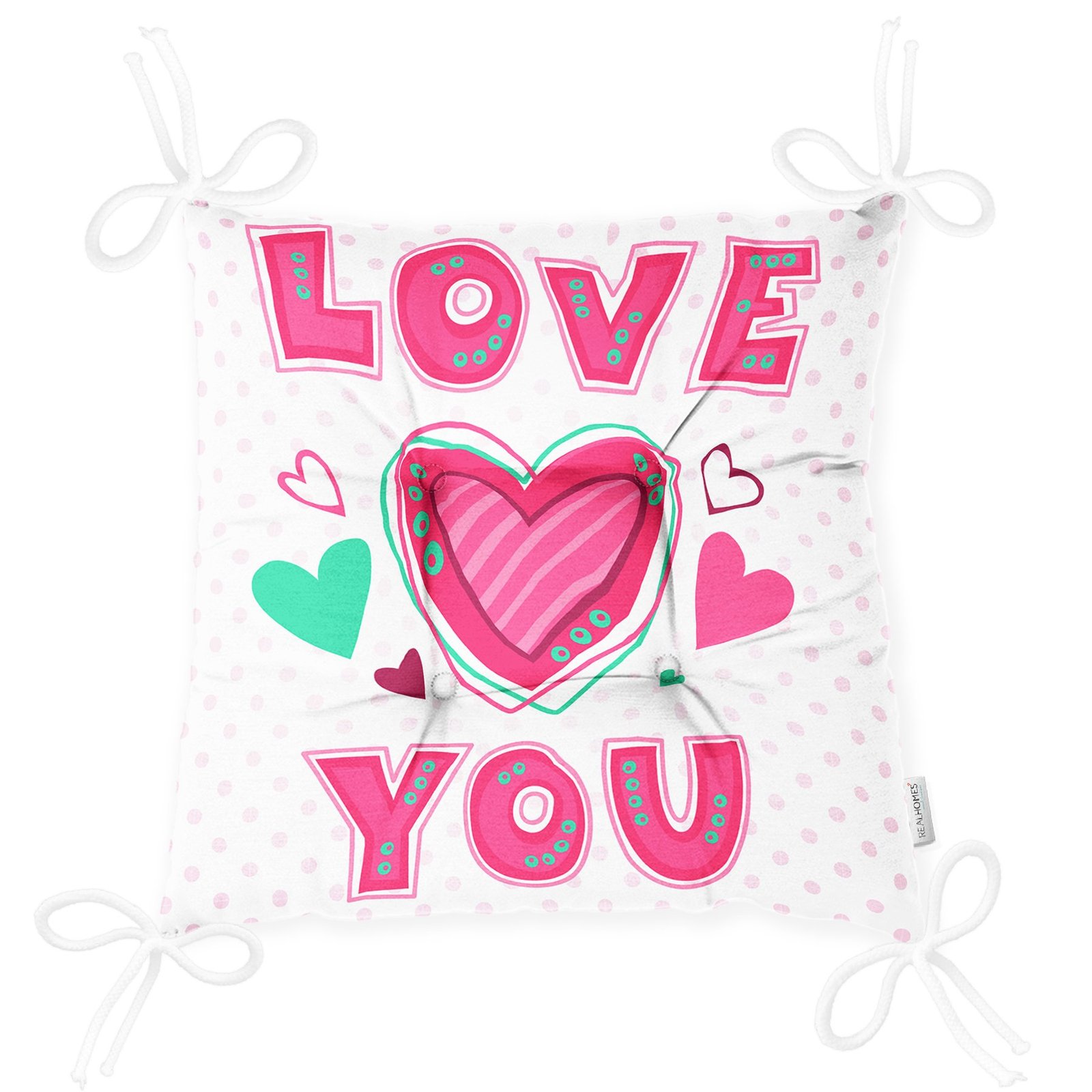 Puanlı Love You Baskıılı Dijital Baskılı Pofidik Sandalye Minderi