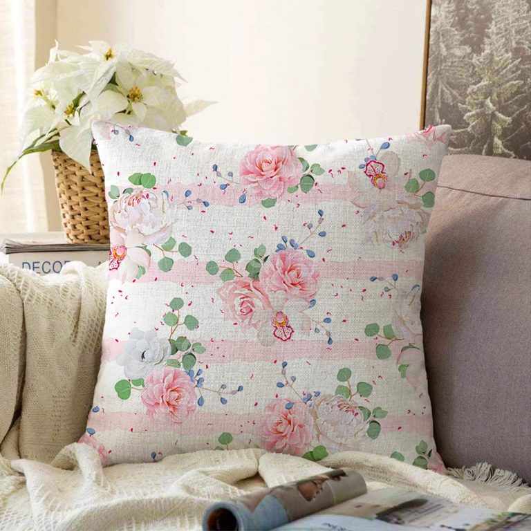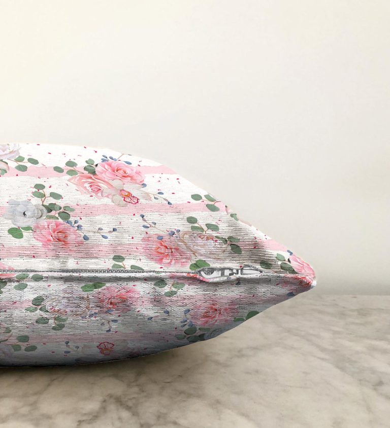 Pudra Beyaz Yatay Temalı Dijital Baskılı Raşel Yastık Kırlent Kılıfı